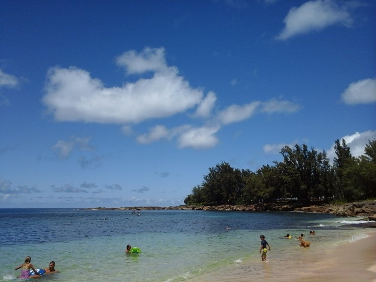 자전거도로 끝 지점에서 조금만 더 가면 와이메아 만(Waimea bay) 비치파크가 있다. 잠깐 들러서 물놀이를 하고 가기로 한다.