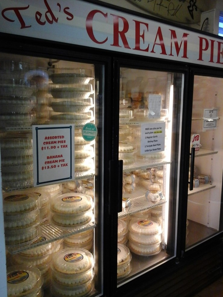 민박집에서 출발하자마자 바로 근처의 하와이 유명 맛집인 테드 베이커리(Tead's bakery)에서 아침을 먹기로 한다. 빵집인데 주 메뉴는 파이 종류라고 한다. 냉장고 안에 크림파이가 종류별로 잔뜩 쌓여 있다.