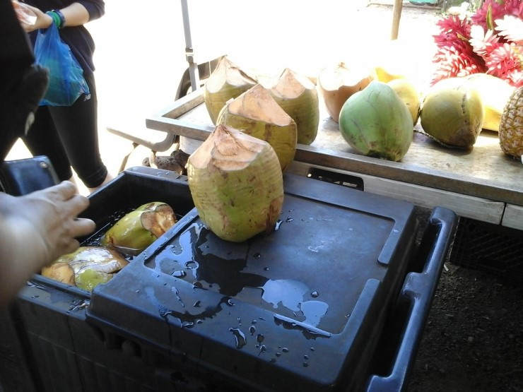 새우로 배를 채우고 조금 달리다 보니 농산물 직거래 노점이라 할 수 있는 Farmer's market이 있다. 먹어보면 실망하지만 안 먹어보면 계속 상상한다는 코코넛 열매를 하나 사서 먹어보기로 한다.