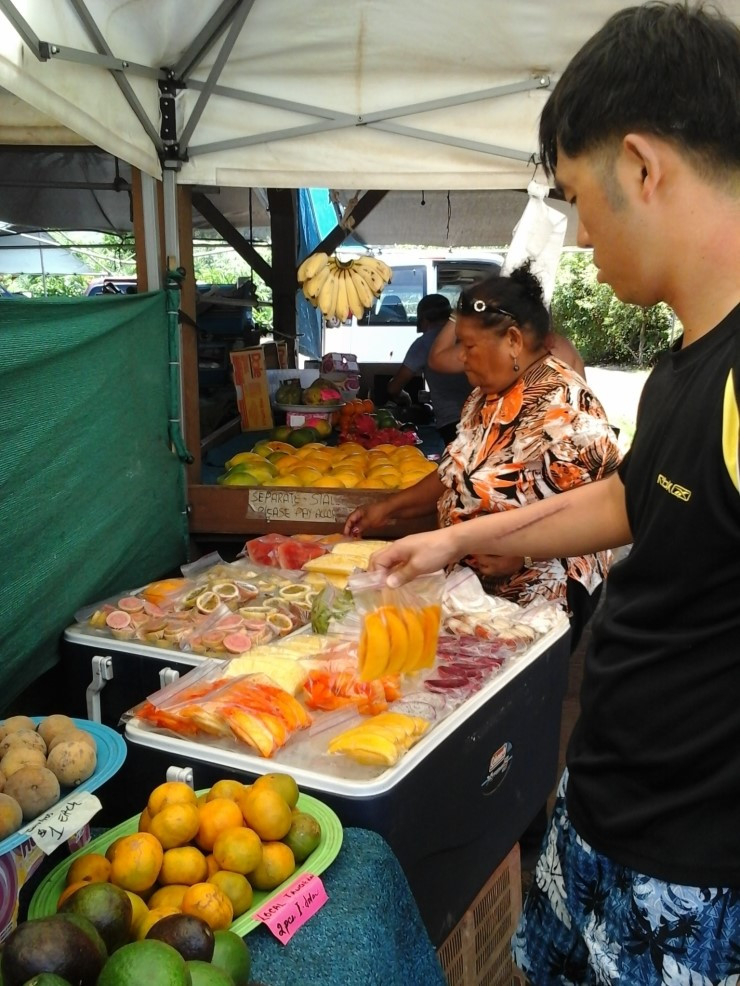 기념관을 모두 관람한 후 근처의 알로하 운동장 (Aloha stadium)에 들어선 주말 시장에 들른다. 슬슬 목도 마르고 배도 고파지니 레모네이드도 한 잔 마시고 차게 식힌 망고도 사 먹는다.