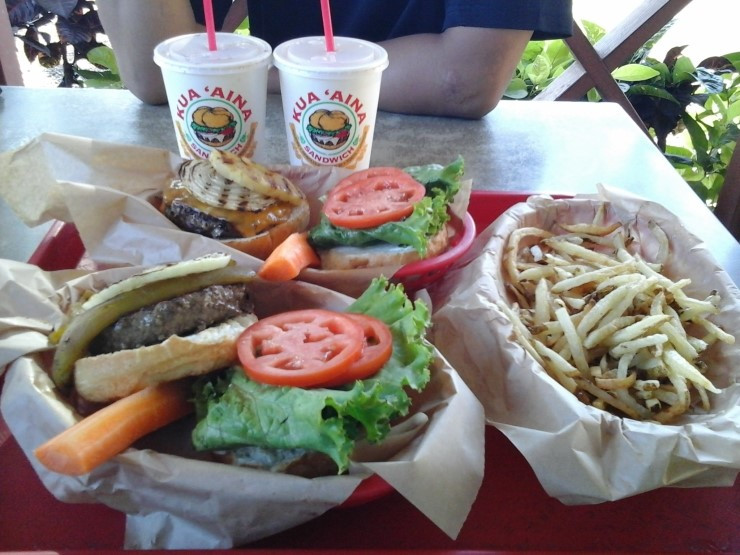 할레이바에서 맛있는 버거집으로 유명한 쿠아 아이나(Kua Aina)에서 점심을 먹는다.
