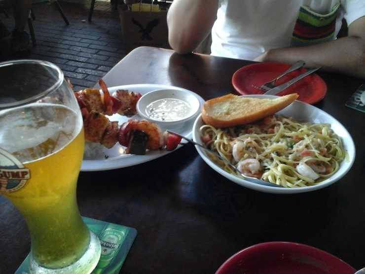 느긋하게 짐을 정리한 후 버스를 타고 저녁을 먹으러 나선다. 알라모아나 쇼핑센터 푸드코트의 영화 포레스트 검프의 테마 식당인 부바 검프(영화에서 포레스트 검프가 소유한 새우 회사 이름)에서 저녁을 먹는다. 영화에서 새우잡이 회사였던 부바 검프의 이름대로 새우가 주 메뉴다. 무사히 오아후 일주에 성공한 것을 자축하며 코나 생맥주에 새우 꼬치와 새우 스파게티 그 외에도 이것저것 시켜서 배 터지게 먹는다.