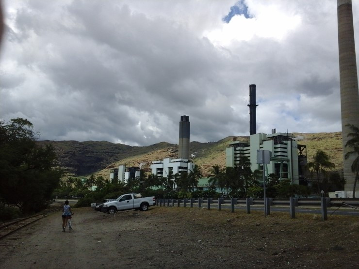 오후에는 스노클링을 하기로 한다. 꽤 많은 민박집에서 보드나 간단한 스노클링 장비를 갖춰놓고 숙박객들이 쓸 수 있도록 해주는데 여기에도 있다. 쌓여있는 장비 중에 제일 멀쩡해 보이는 것으로 골라서 두 세트를 챙겨서 나온다. 스노클링 포인트가 있는 카헤 포인트 비치파크 (Kahe point beach park)까지 자전거를 타고 시내를 벗어나서 폐쇄된 패링턴 하이웨이의 옛길을 따라간다. 가는 길에 만나는 화력발전소에서 오아후 섬에서 필요한 전기의 대부분을 충당한다고 한다.
