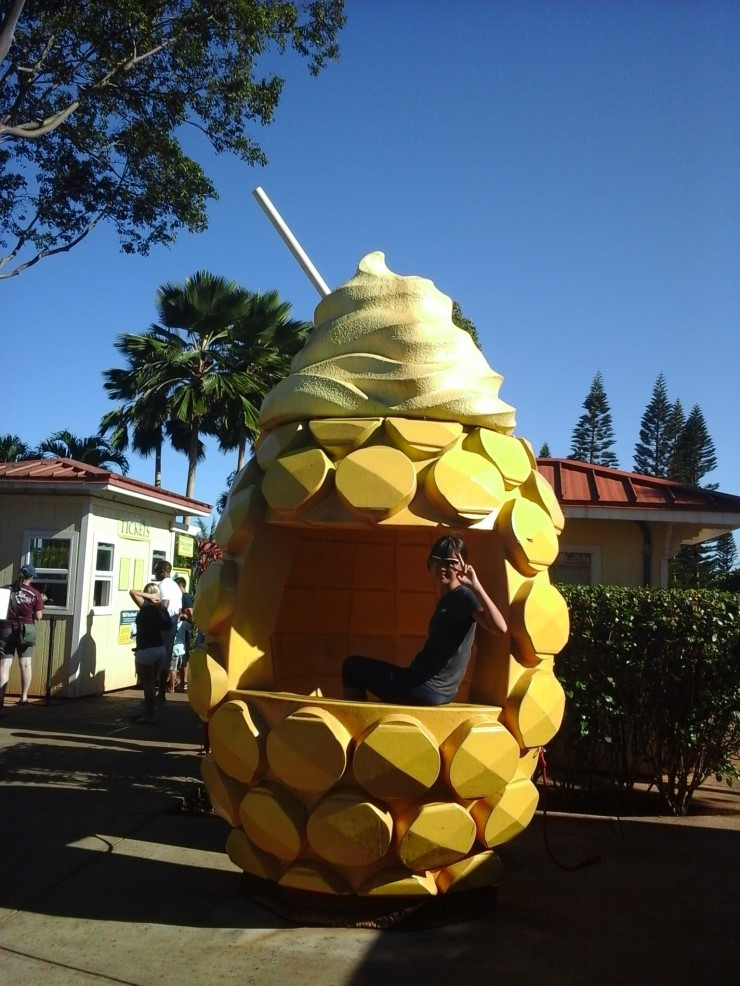 이제 파인애플 정원 쪽으로 가본다. 가는 길에 아이스크림 통을 크게 만들어 놓은 모형도 있다. 파인애플 정원에서는 말 그대로 파인애플들을 볼 수 있다. 파인애플은 무처럼 뿌리도 아니고 사과처럼 주렁주렁 나무에서 열리는 것도 아니고 이렇게 열리는 것을 모르는 사람들도 많다.