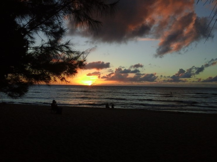 다시 할레이바에서 숙소가 있는 선셋비치까지 지친 몸을 이끌고 열심히 달렸는데 민박집 주인아주머니가 잠깐 외출 중이다. 마침 해가 저무는 시간... 하와이의 일몰을 감상하기 가장 좋은 선셋 비치 해변에서 하와이의 일몰을 감상한다.