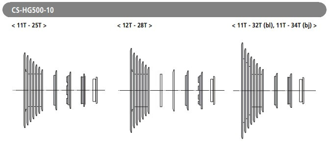 SLX나 Deore는 스프라켓이 거의 분리되지 않으며 10단에 11-36T까지만 있다. 조만간 11단 SLX M7000이 출시되지만 XT만큼 스프라켓이 분리되진 않을 것이다.