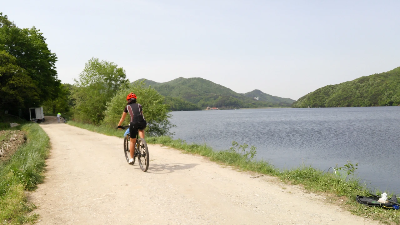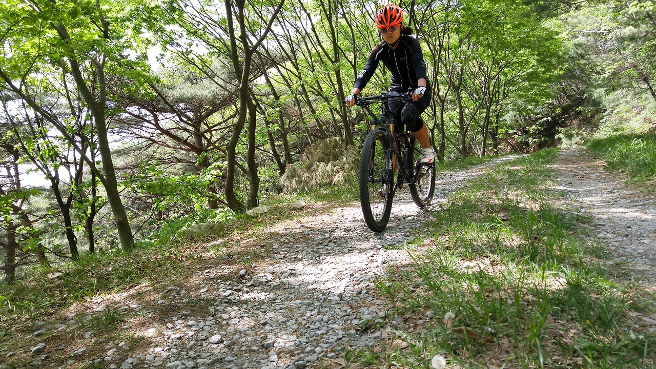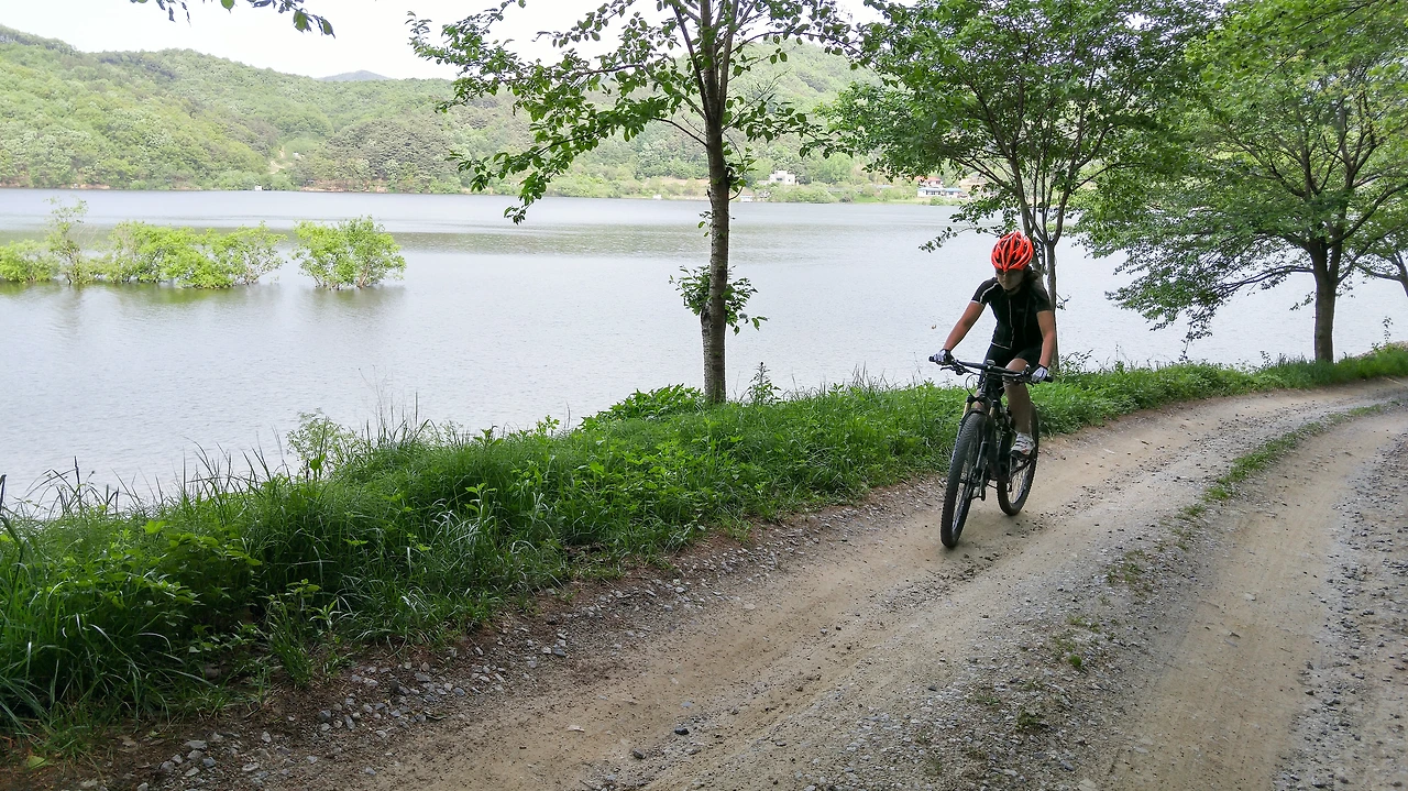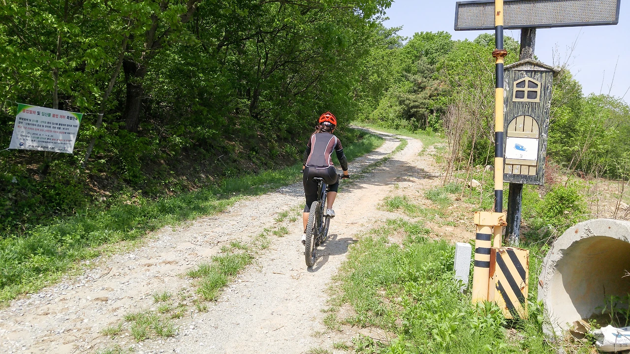 처음부터 자갈이 많은 비포장길이 나온다. 자갈이 적은 곳으로 잘 조향해서 달려야 한다. 자갈길을 달릴 때는 가벼운 기어에 놓고 부드럽게 페달링 하는 것이 요령이다.