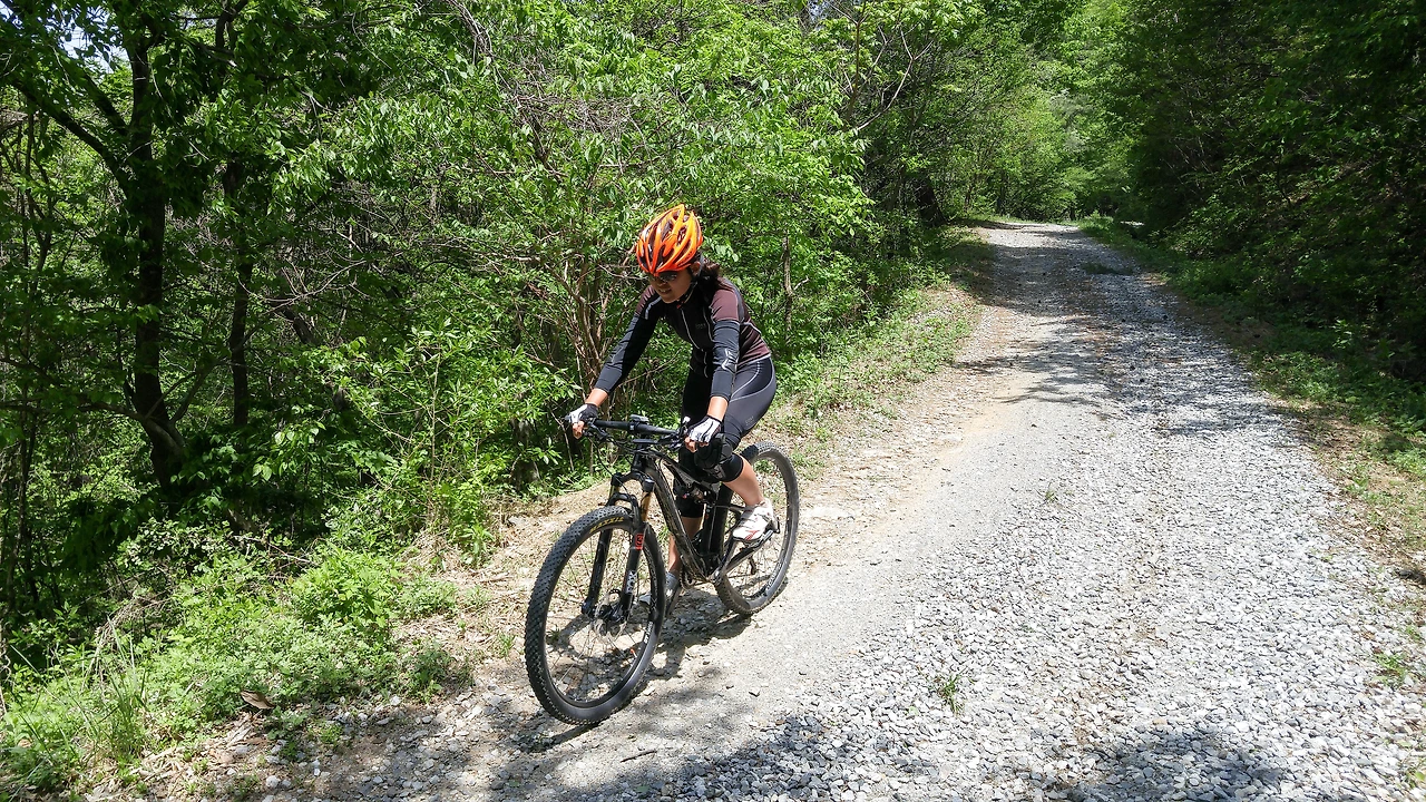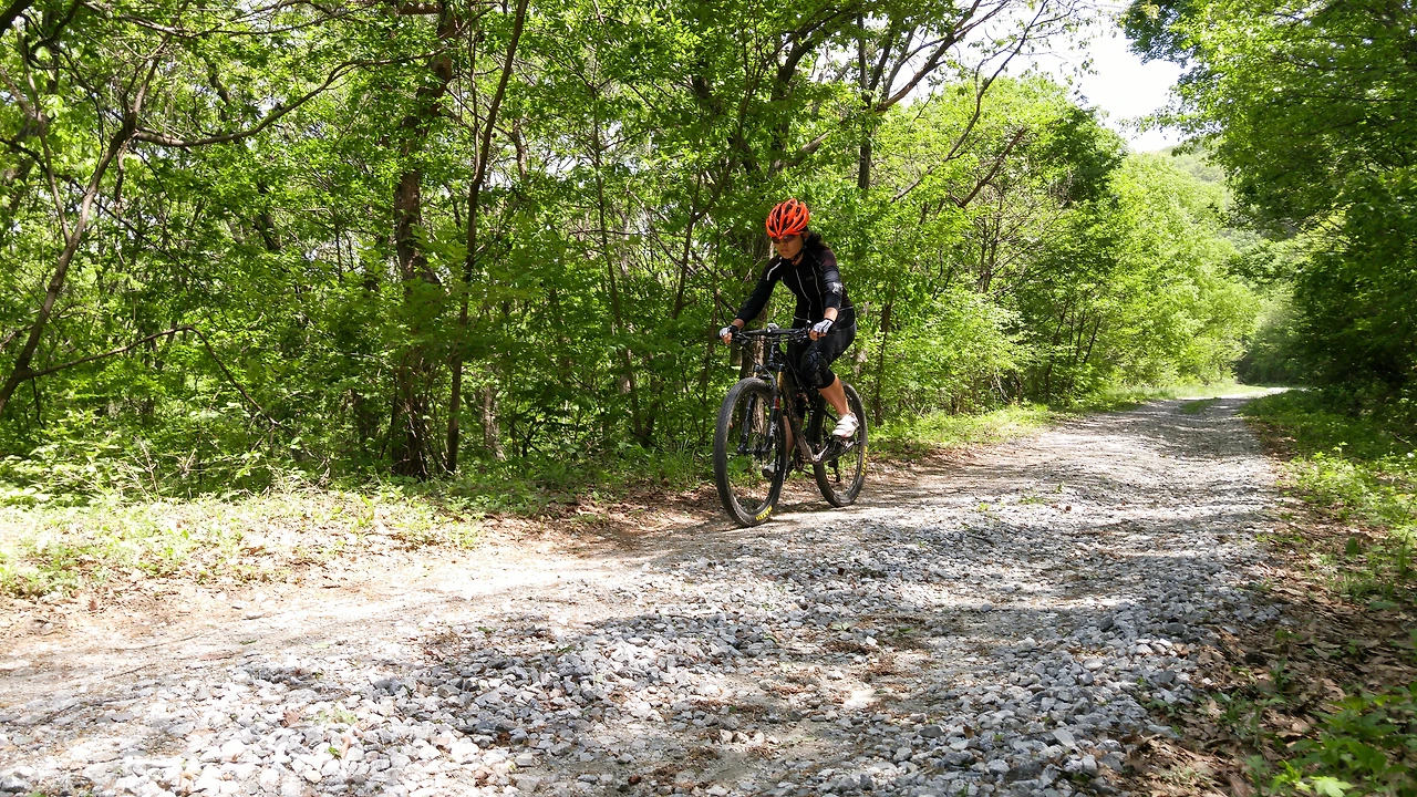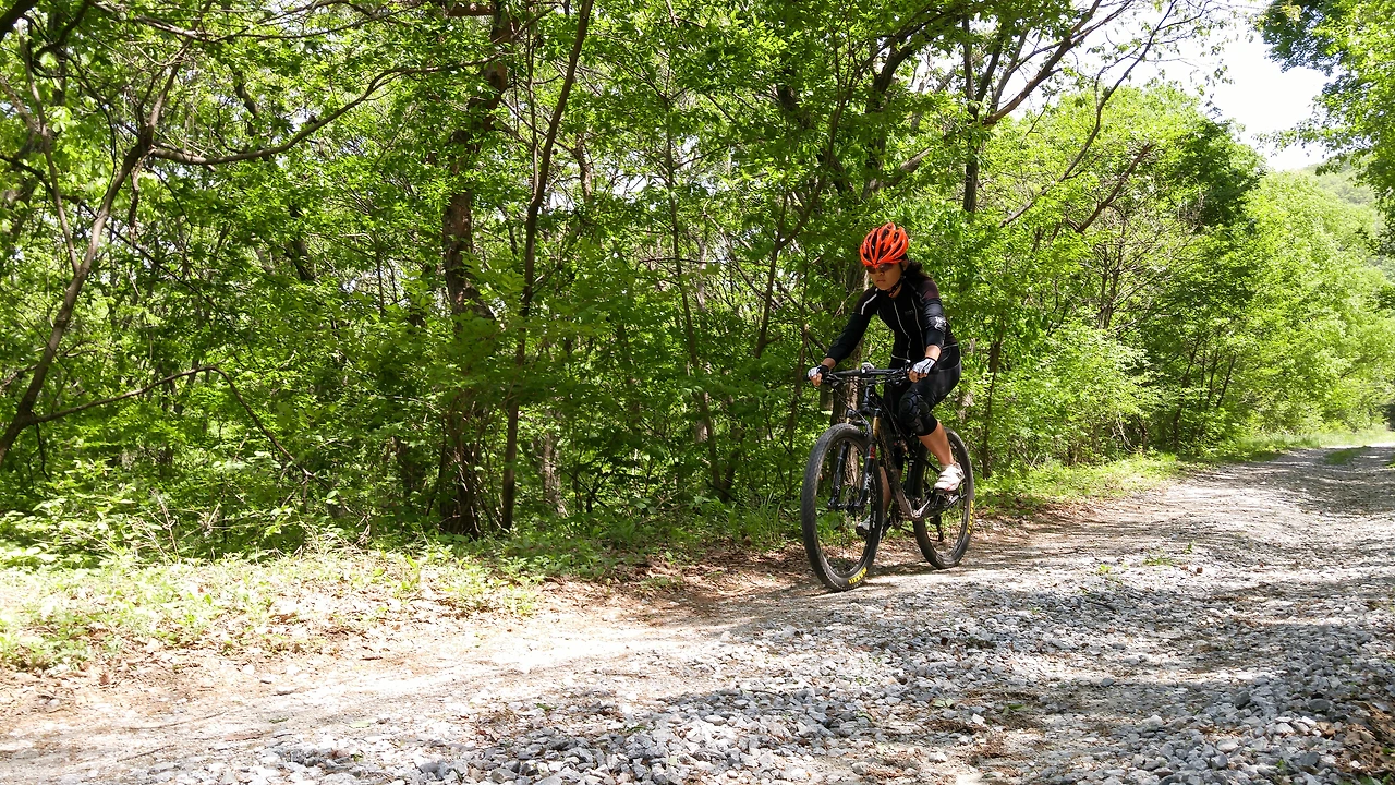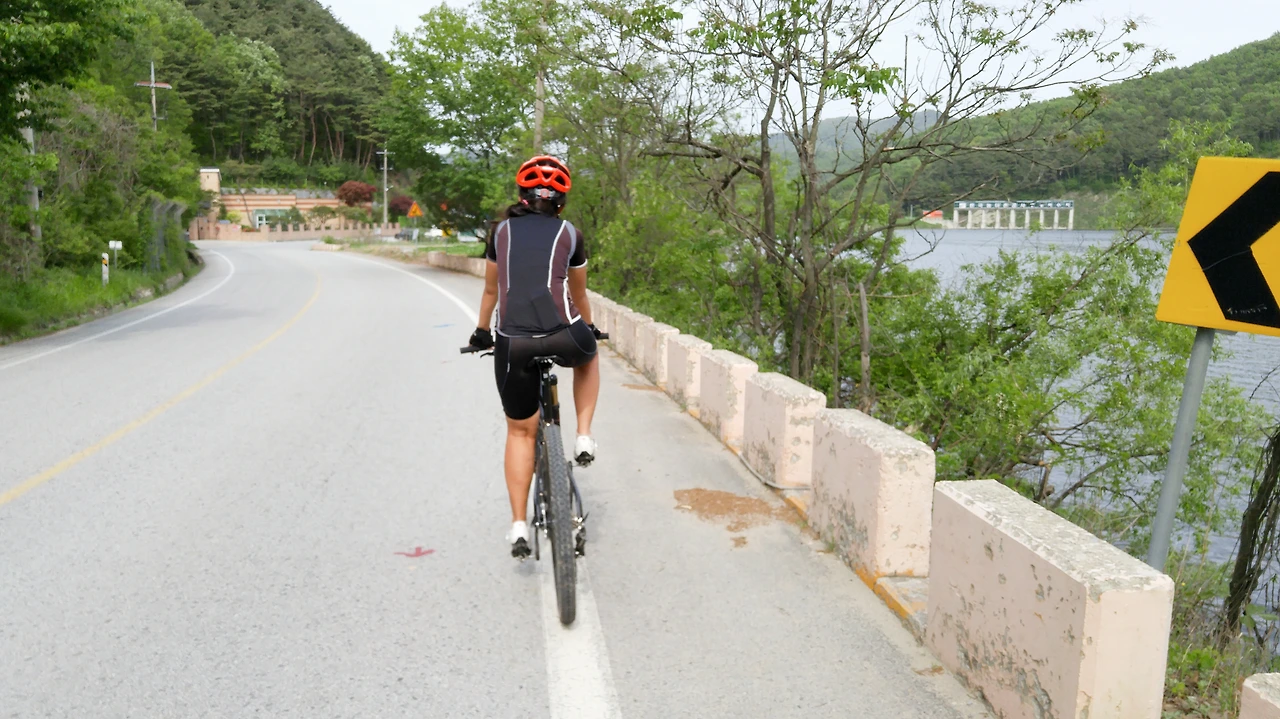 처음부터 자갈이 많은 비포장길이 나온다. 자갈이 적은 곳으로 잘 조향해서 달려야 한다. 자갈길을 달릴 때는 가벼운 기어에 놓고 부드럽게 페달링 하는 것이 요령이다.