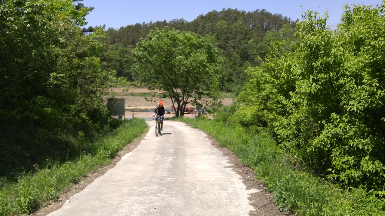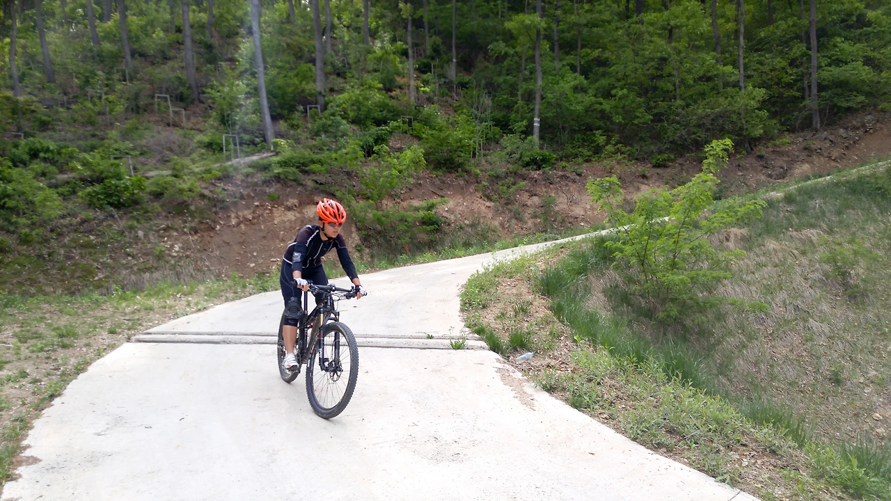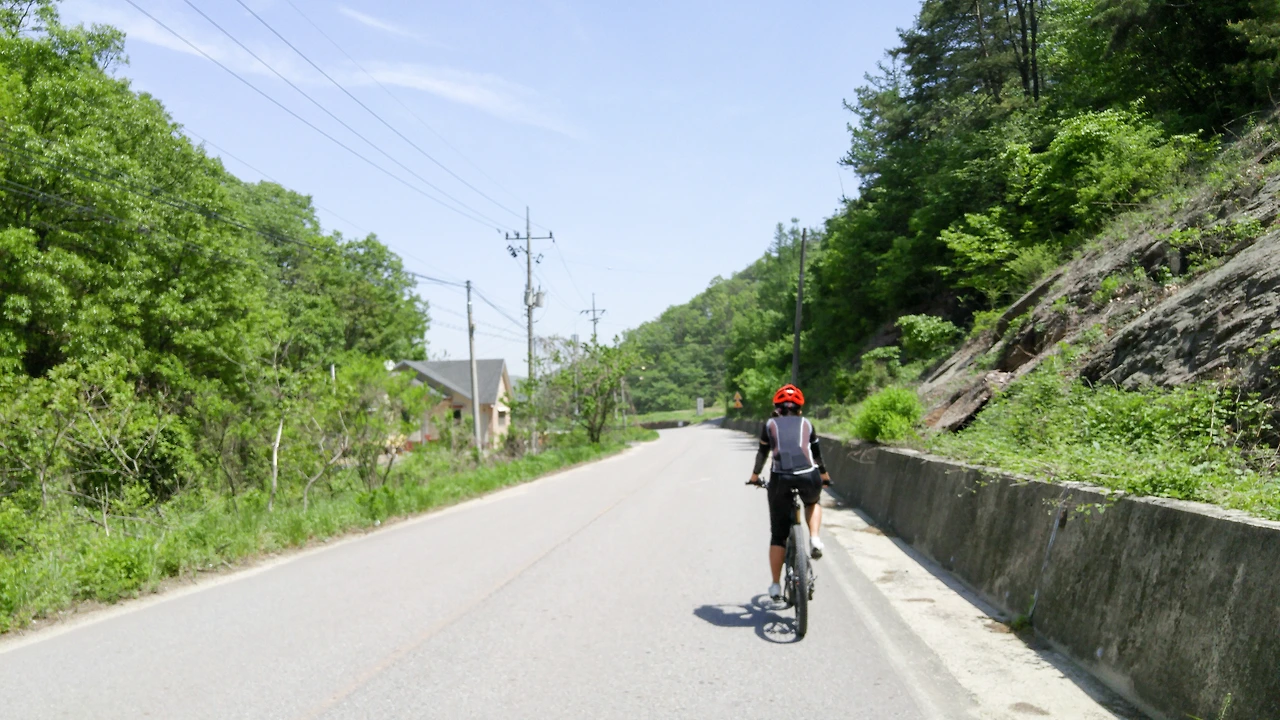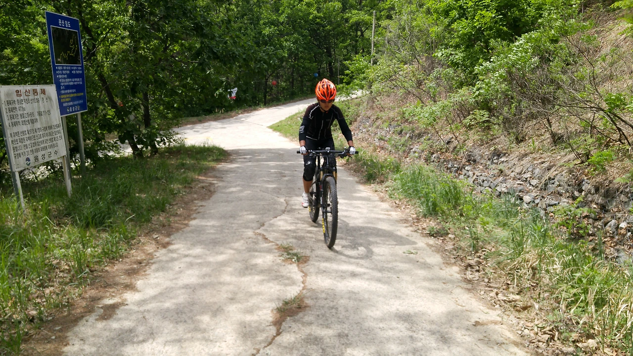 임도 출구로 나오면 이제 마지막으로 짧은 임도를 하나 더 탄다. 임도 입구까지 낮은 언덕을 하나 넘어가야 한다.