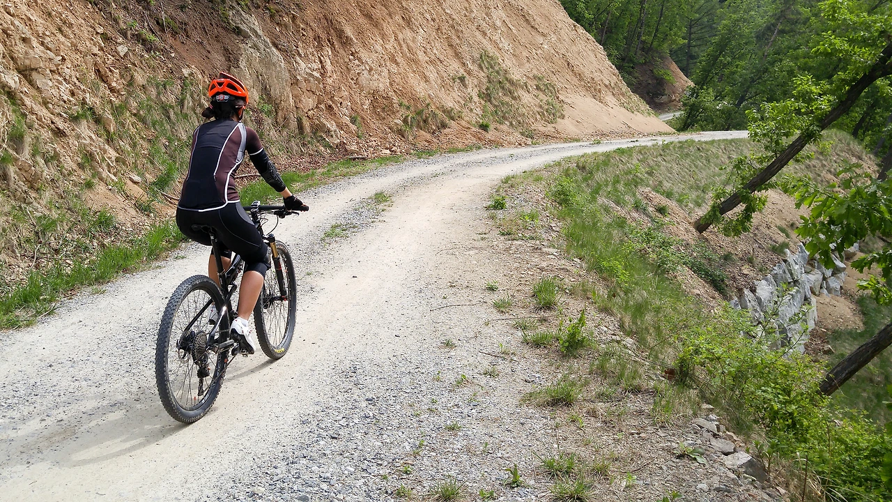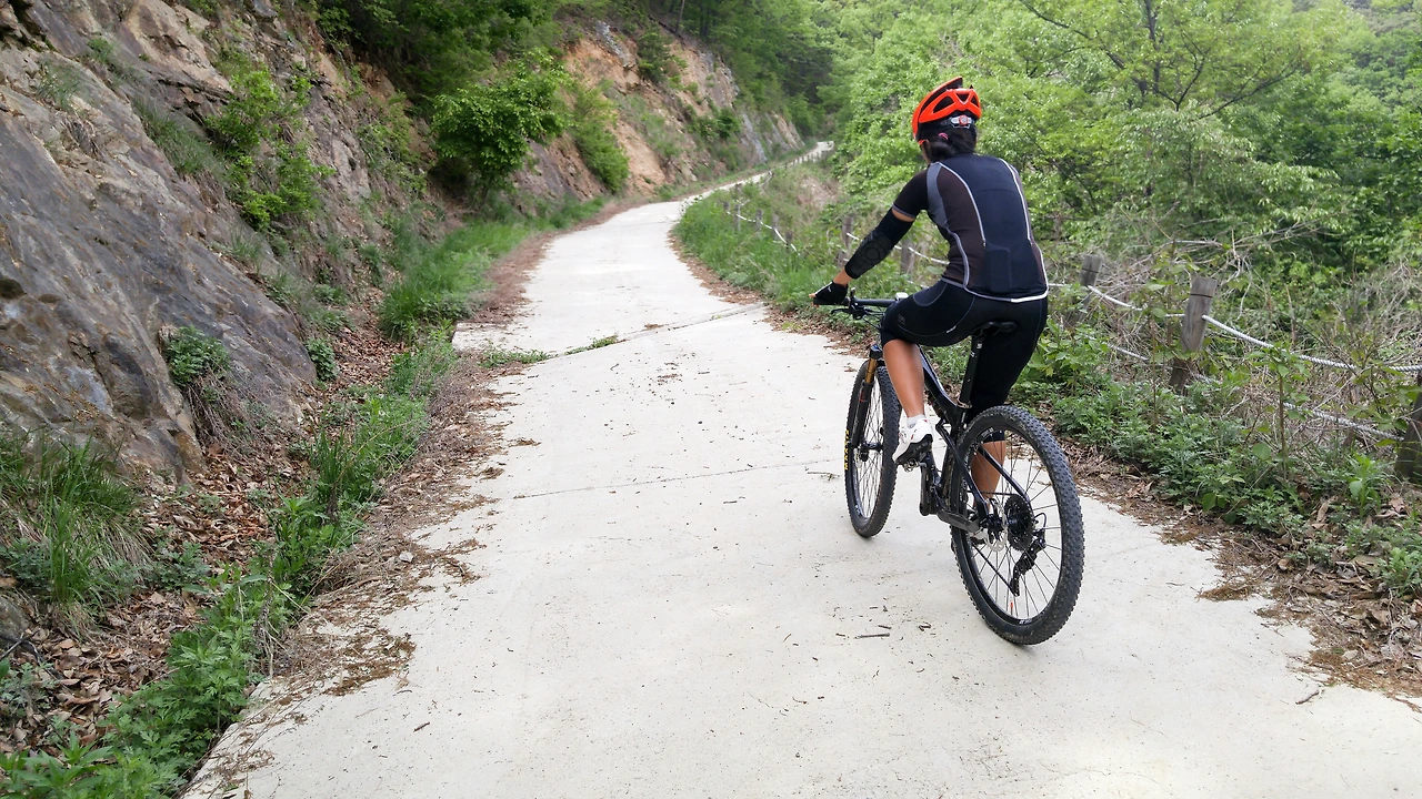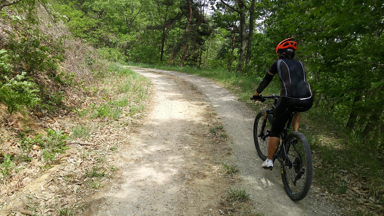 시작부터 그리 가파르지 않고 노면도 좋은, 초보자가 타기 좋은 임도이다.