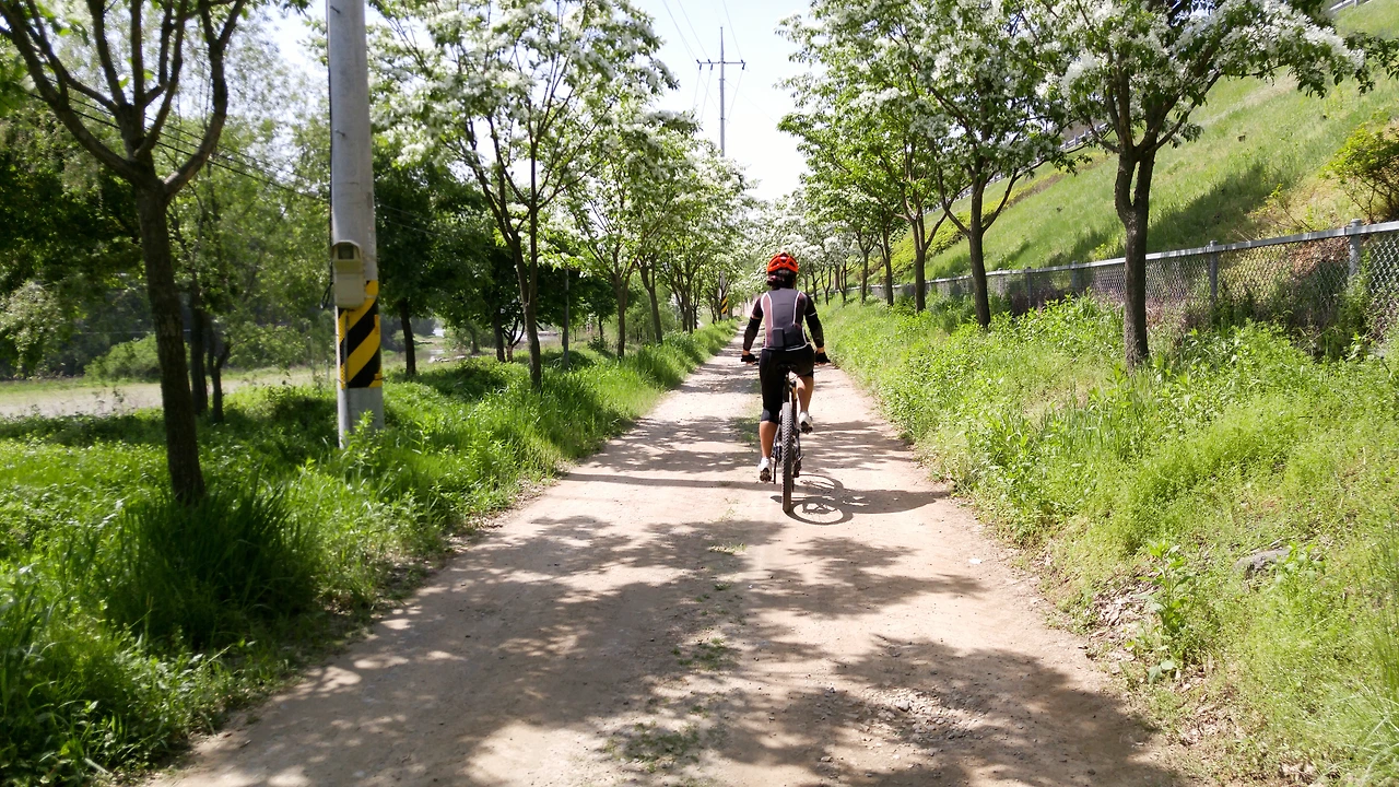 백곡천 자전거도로를 쭉 따라가면 된다.