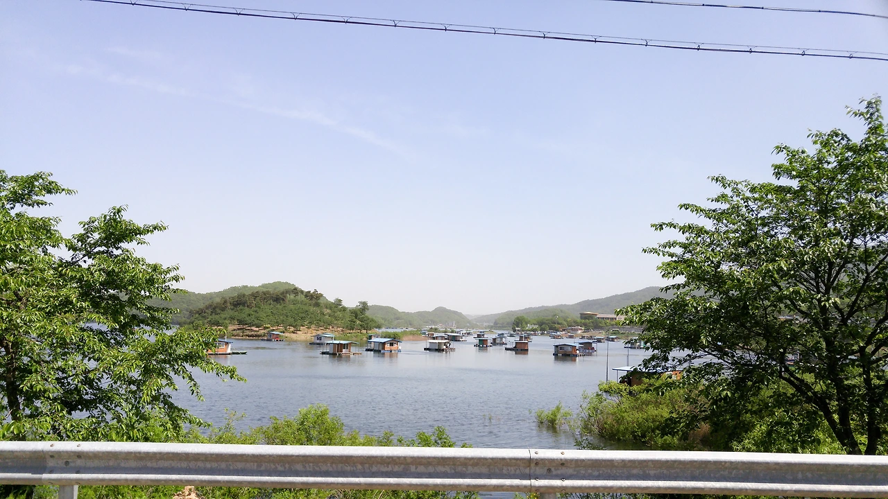 초평저수지에는 낚시 좌대가 많이 떠 있다. 근처에 민물고기 요리를 파는 식당도 많다.