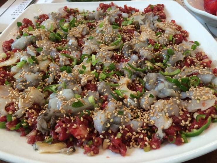 목포는 산낙지회라 할 수 있는 낙지 탕탕이로 유명하다. 영산강 자전거길을 끝내고 목포 버스 터미널로 가는 길에 가장 가까운 한우낙지탕탕이 전문점이기에 찾아갔던 집이다. 한우전복낙지탕탕이 소짜를 주문해서 지니님과 둘이서 배가 터지도록 먹는 곳이다.