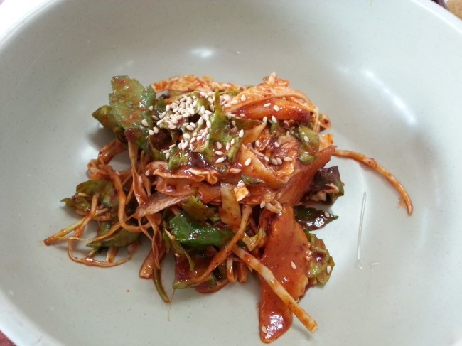 외포리 선착장의 식당가 거의 끝에 있는 집이다. 지나가다가 근처 인부 아저씨들이 점심을 먹고 있길래 들어간 집이다. 된장찌개와 밴댕이회무침이 맛있는데 의외로 칼국수는 평범하다. 지니님과 둘이서 밴댕이 회무침 소짜를 주문해서 반반 나눠서 대접에 넣고 밥을 비벼 먹는다.