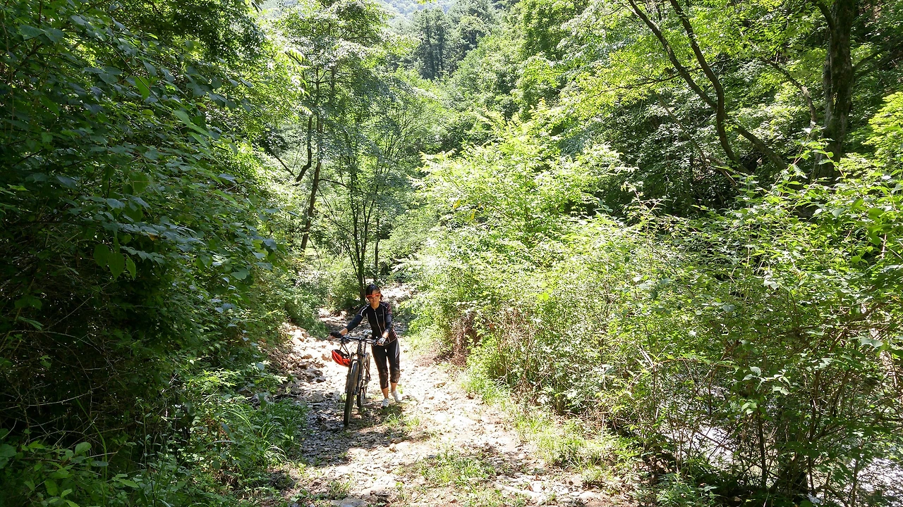 길에 돌맹이가 많아서 끌고 올라갔더니 윗부분은 돌맹이도 폭우에 휩쓸려 내려가면서 길이 완전히 망가져버렸다. 자전거를 들고 오르다가 끌바, 들바에 익숙하지 않은 지니님이 완전히 지친다. 허리가 끊어질 듯 아플 것이다. 산악자전거가 전신 운동일 수 밖에 없는 것이 이 끌들멜 때문이라 생각한다.