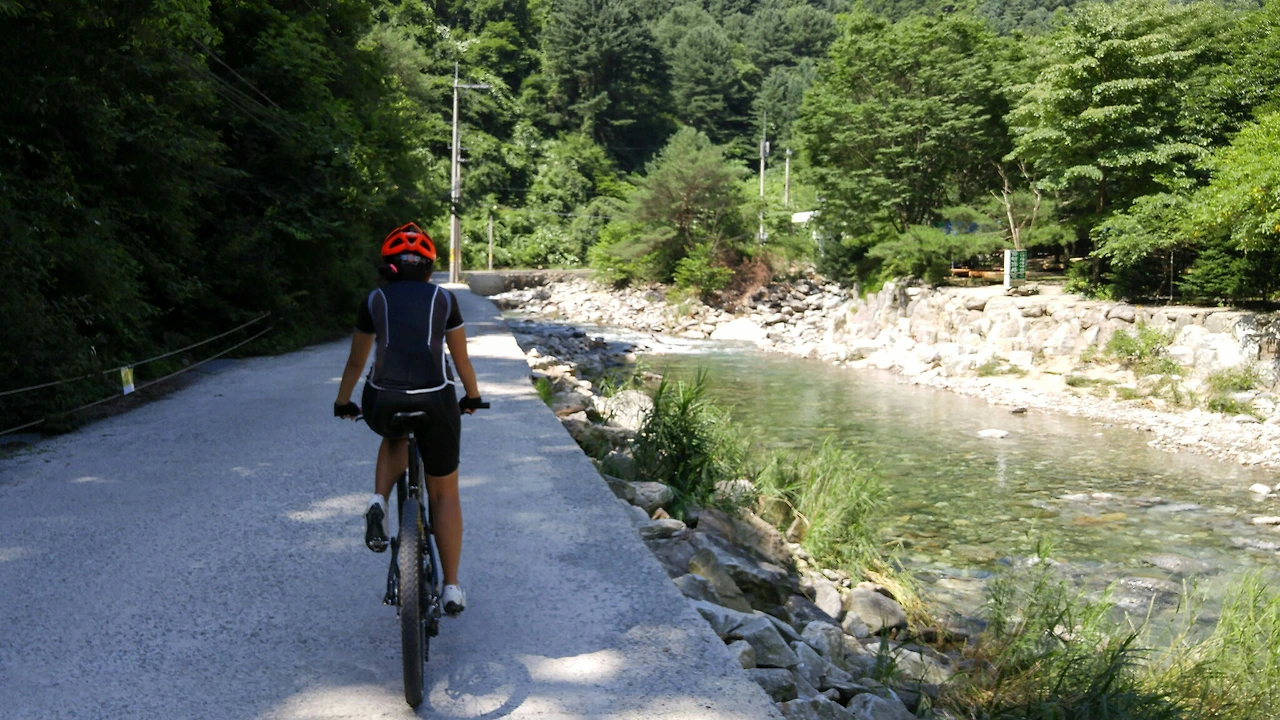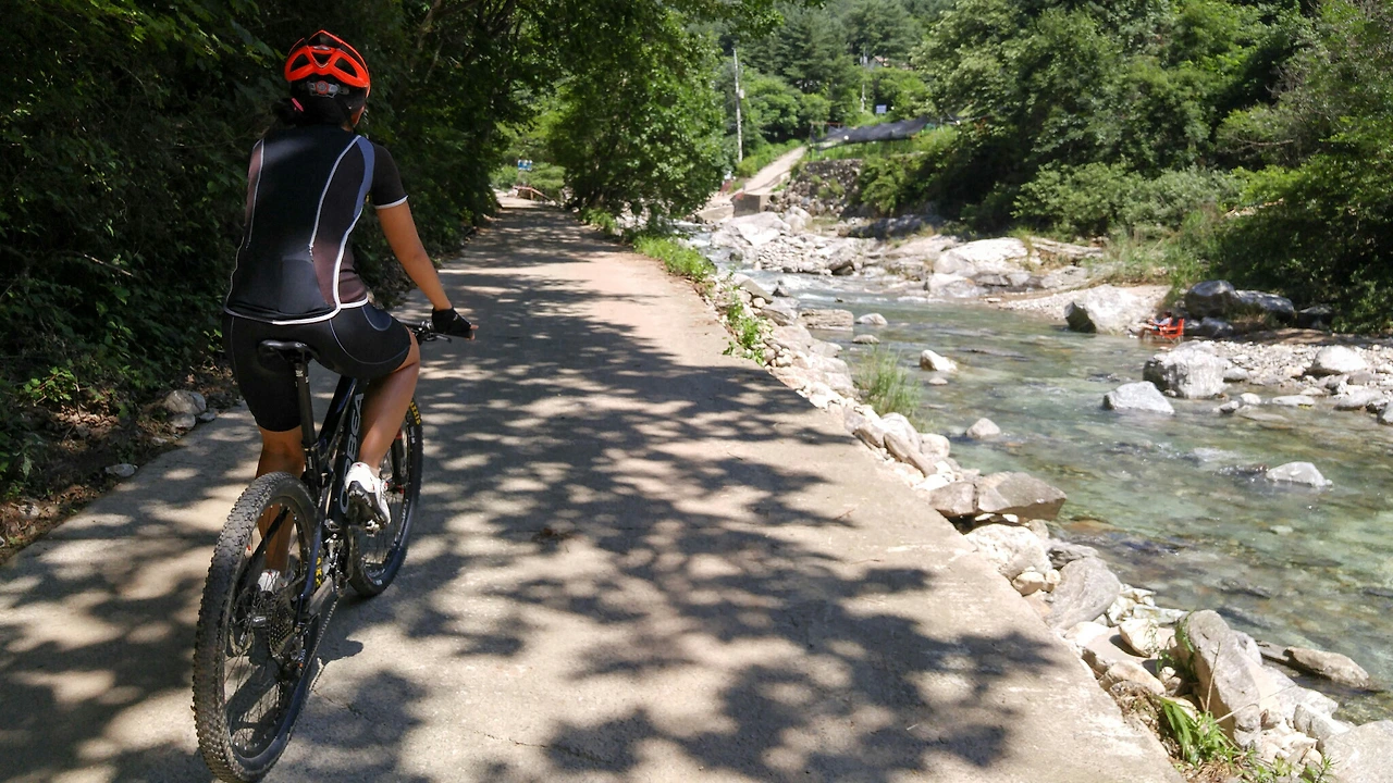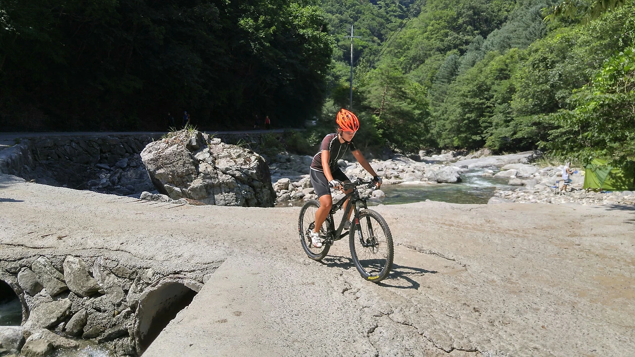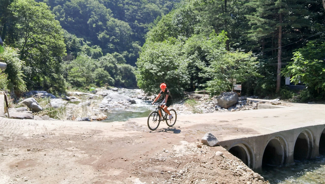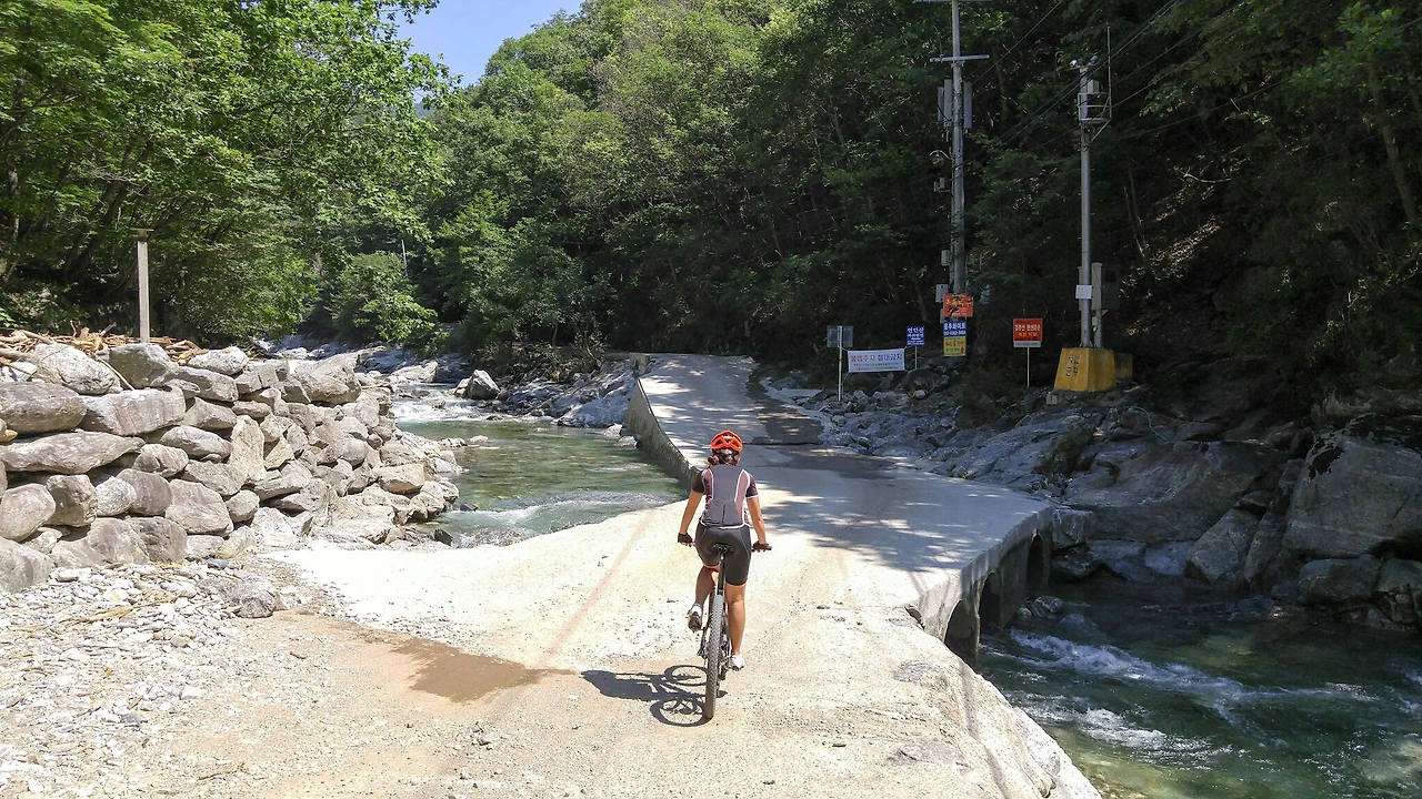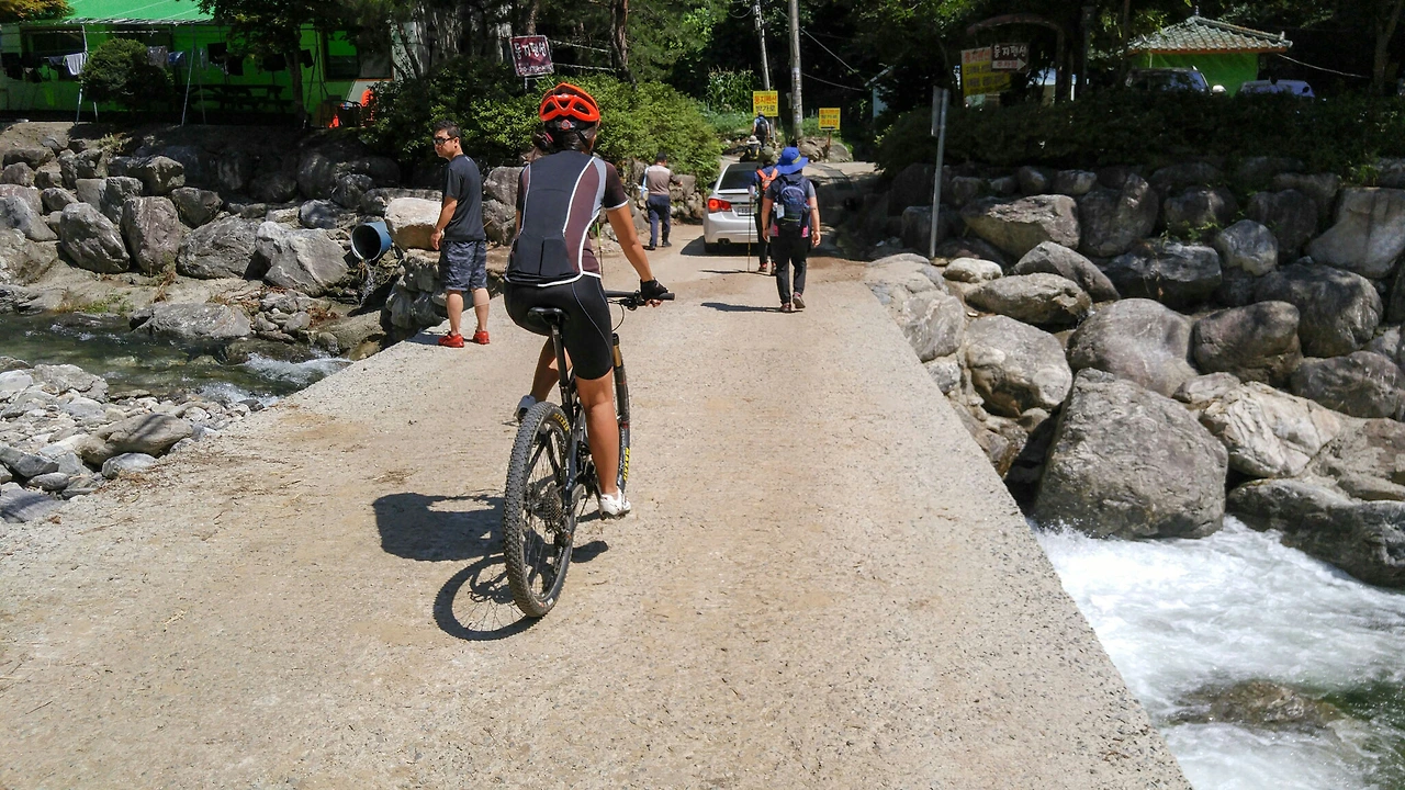 시멘트 다리를 몇 번 건넌다. 몇 년 전까지만 해도 다리가 없어서 차들이 강을 헤치고 건너다니던 곳이다. 좀더 올라가면 자전거로 강을 건너야 하니 펭페달을 쓰는 동호인이라면 아쿠아슈즈 같이 물이 잘 빠지는 신발을 신자.