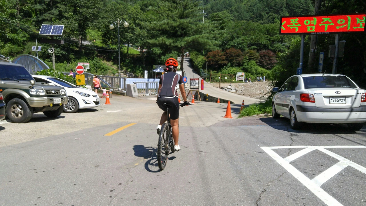 이 좁은 길은 조금만 늦게 오면 많은 차들이 몰려서 승용차로 오가기에는 쉽지 않은 곳이다. 차를 가지고 온다면 오전 10시 전에 올라오고 계곡에서 천천히 놀다가 다른 차가 빠지는 저녁에 나가야 한다.