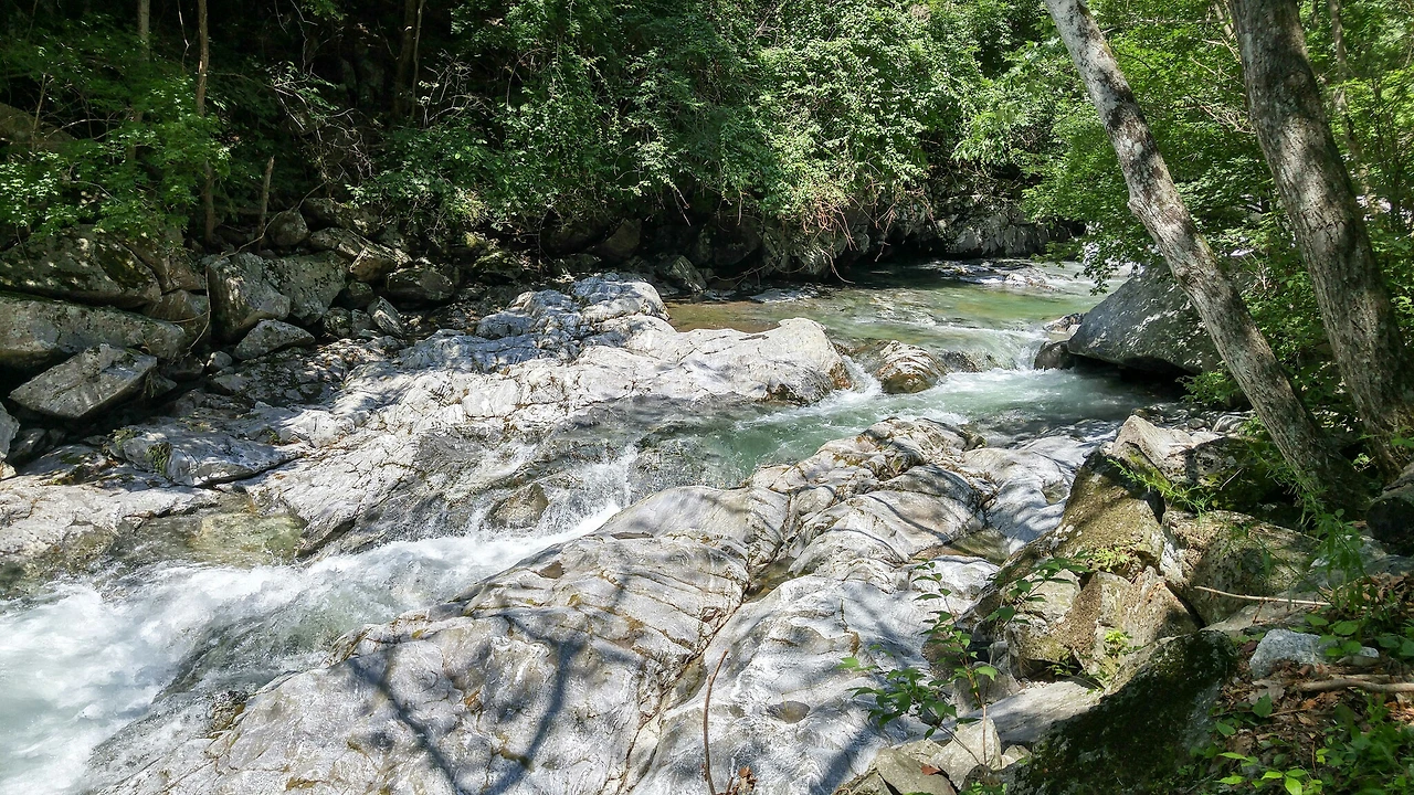 비가 온지 얼마 안되어 계곡 물이 넘치게 흐른다.