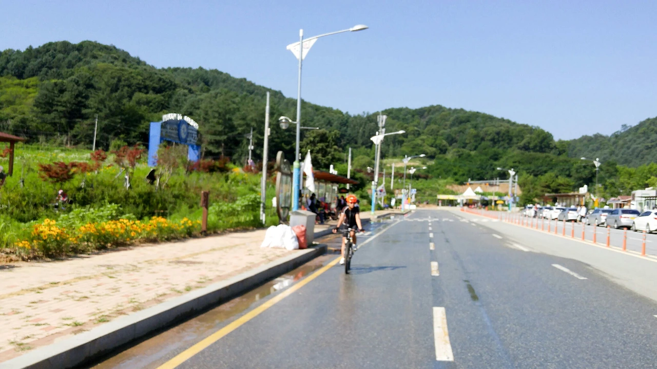 오늘은 폭염주의보가 발령된 날이다. 다리 건너의 경기도 공무원 휴양소부터는 길이 좁아진다.