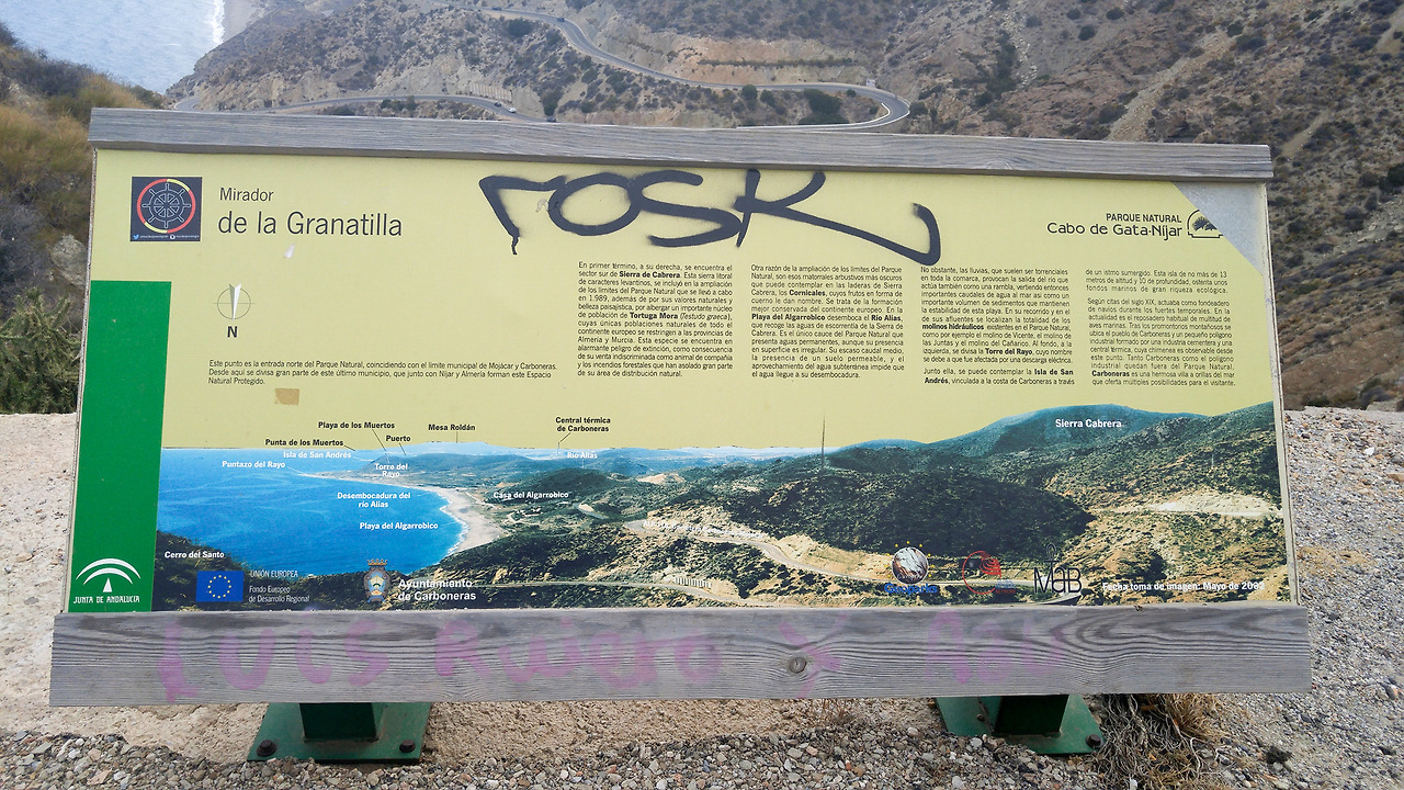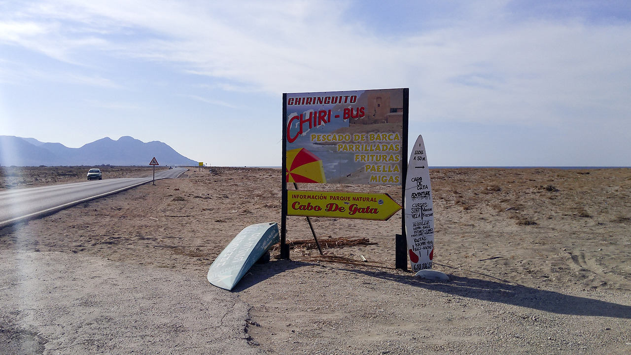 AL-3115를 따라가다보면 Cabo de Gata 표지판을 볼 수 있다. Cabo de gata는 직역하면 고양이곶이란 뜻으로 우리나라로 치면 호미곶 같은 장소이다. 암고양이를 뜻하는 단어인 gata는 사실 이 근처에서 마노석(agata)이 나와서 이를 칭하는 것이라고 한다.