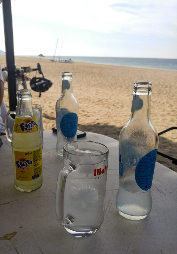 스페인 여행 중에 가장 자주 마실 음료인 아쿠아리우스와 레몬맛 환타를 주문한다. 아쿠아리우스는 포카리스웨트 비슷한 것으로 국내에도 드물긴 하지만 팔고 있는 스포츠 음료이고 레몬맛 환타는 국내에는 없는 탄산이 강한 레모네이드 같은 환타이다.