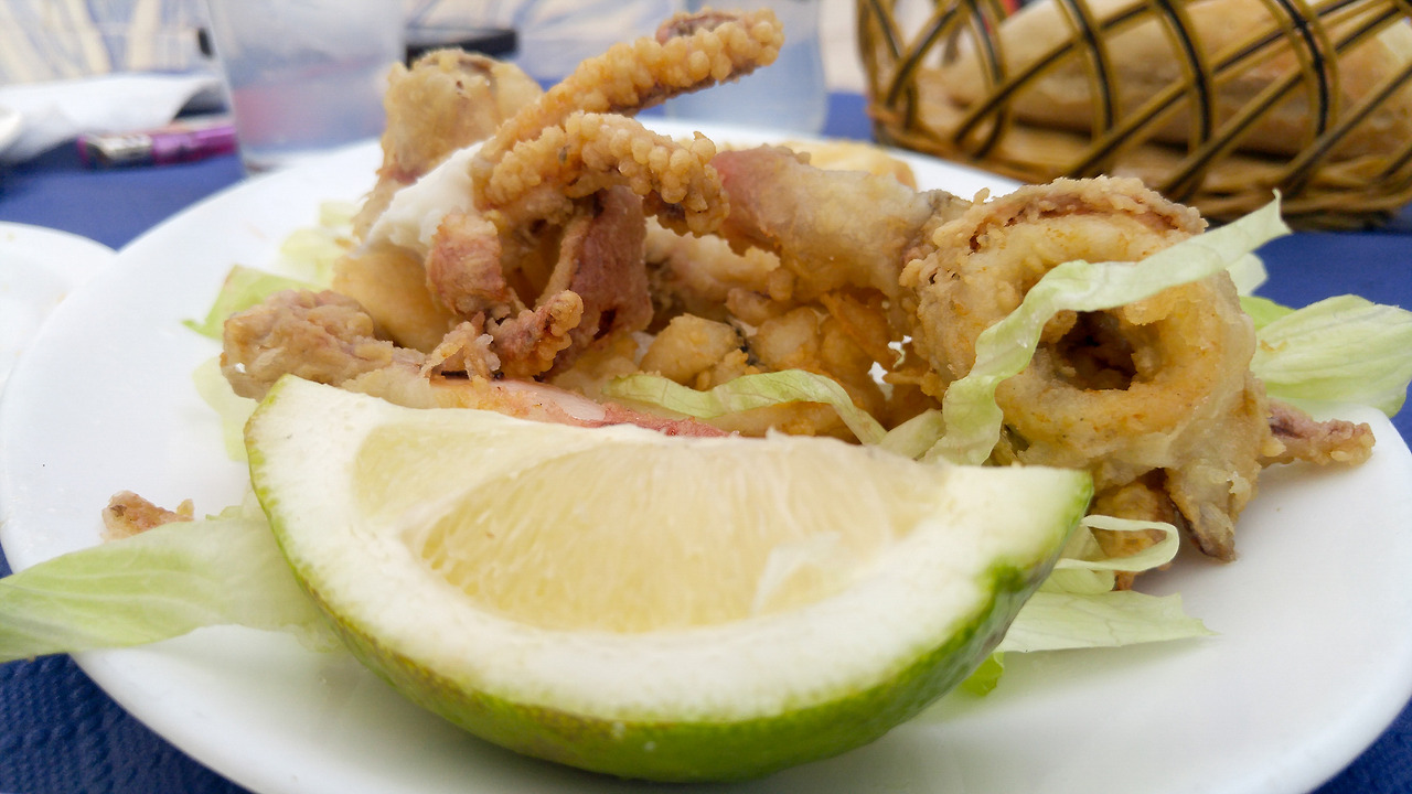 해변의 식당은 왠지 직원이 불친절해서 바로 뒤의 식당에 갔더니 직원이 없던 자리도 만들어 주면서 친절하게 맞아준다. 흔히 먹을 수 있는 오징어 튀김을 주문했다. 왜 이 사람들은 튀김을 간장 없이 먹는걸까...