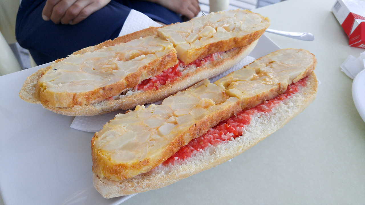 스페인에서 아침식사로 지겹게 먹을 스페인의 토스트라 할 수 있는 토스타다(Tostada)로 아침을 먹는다. 보통 바게트빵 비슷한 약간 딱딱한 빵을 굽고 그 위에 토마토를 생으로 으깬 소스를 살짝 올린 후에 선택한 재료를 얹어 준다. 육식주의자인 나는 당연히 햄과 참치를 얹고,