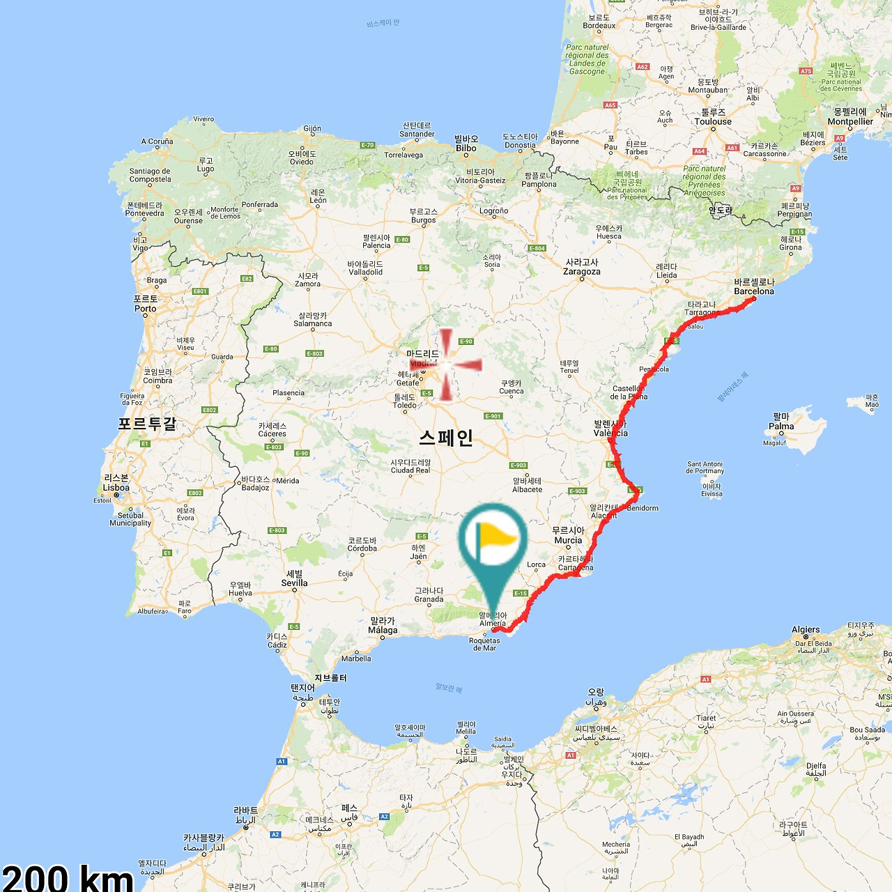 드디어 알메리아부터 바르셀로나까지 스페인 동부 해안 자전거 여행을 시작한다. 알메리아를 시작점으로 한 것은 스페인 동부 지중해 해안의 시작점인 카보 데 가타(Cabo de Gata; 고양이곶)에서 가깝기 때문이다.