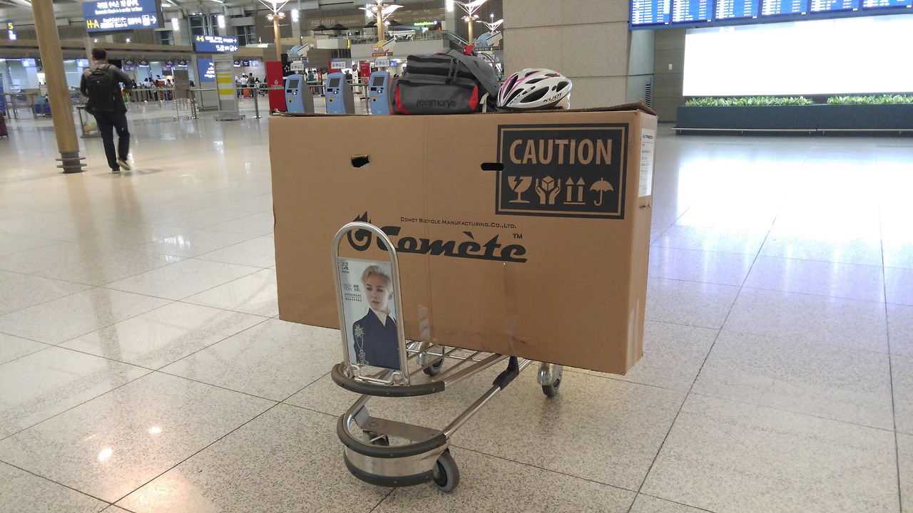 체크인을 하며 자전거를 수하물로 부쳤다.