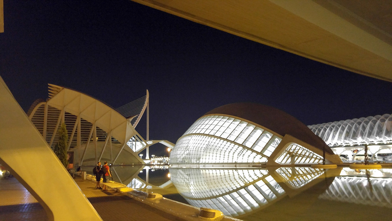 이상한 건물들이 줄지어 나타난다. '예술과 과학의 도시' 구역인 만큼 이상한 건물이 한둘이 아니다. 과학 박물관(Museo de las Ciencias Príncipe Felipe), 아이맥스 영화관(Hemisferic IMAX), 오페라 발렌시아(Palau de les Arts Reina Sofia)가 연이어 나타난다.