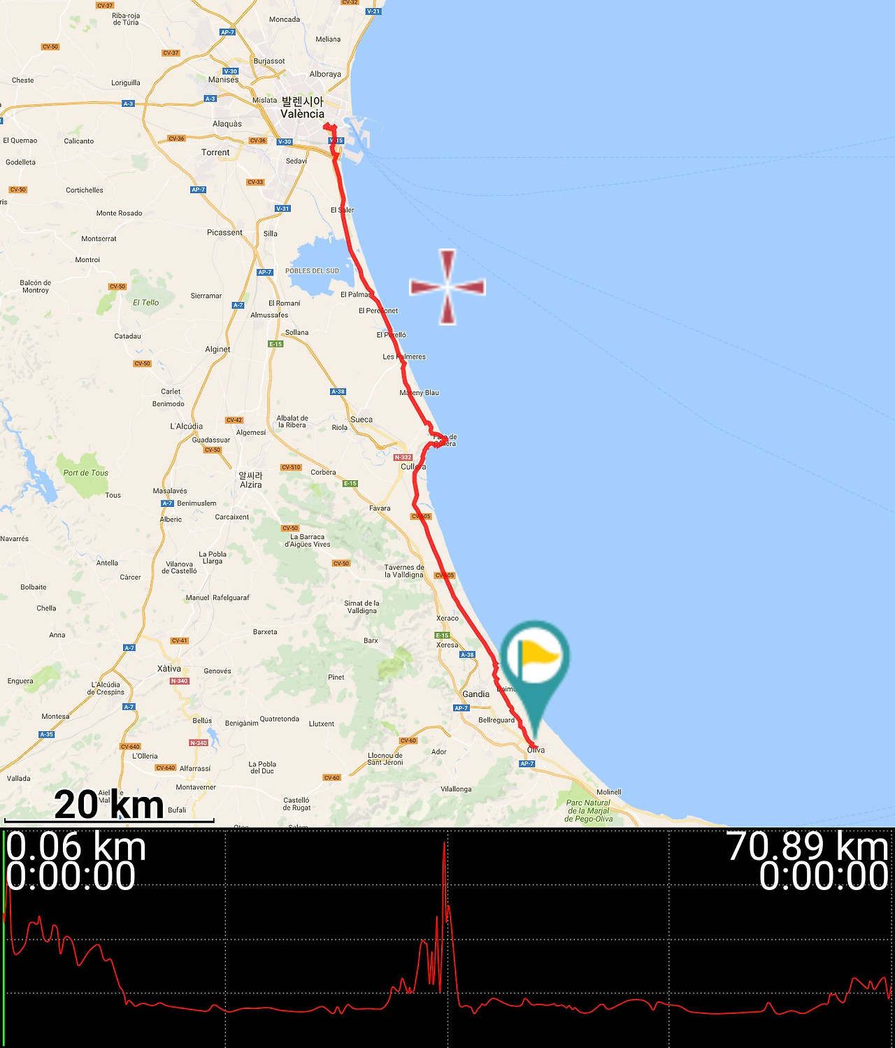 12일부터 부지런히 100여 km를 달린 덕분에 오늘은 70km만 달렸다. 내일은 다음 도시로 가지 않고 발렌시아에서 하루 쉬면서 자전거를 타고 발렌시아 시내를 돌아다니기로 한다.
