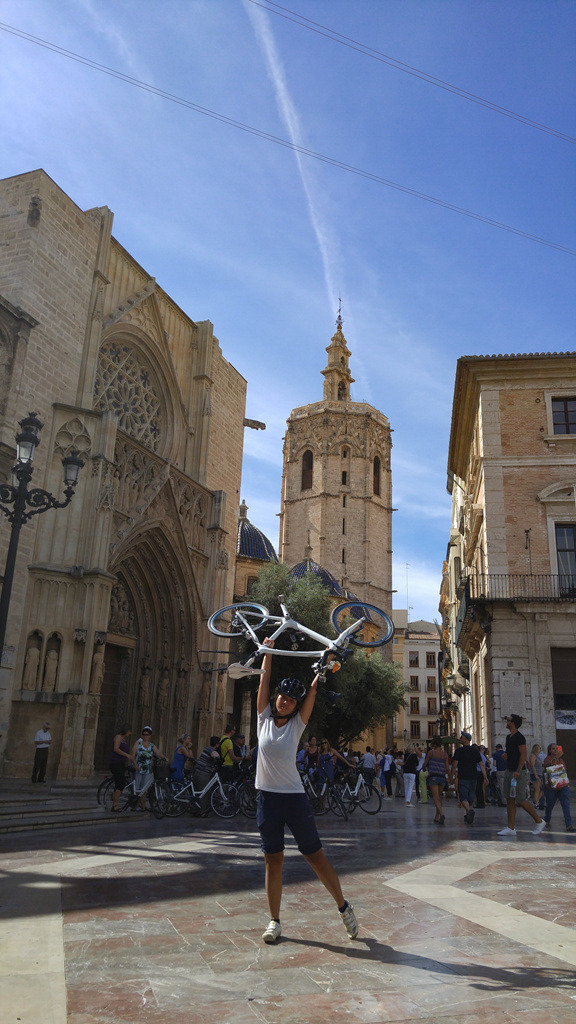 다시 발렌시아 대성당 앞에 온 김에 발렌시아 도착 기념 인증샷도 한 번 찍는다. 뒤쪽으로 자전거 단체 투어팀이 보인다.