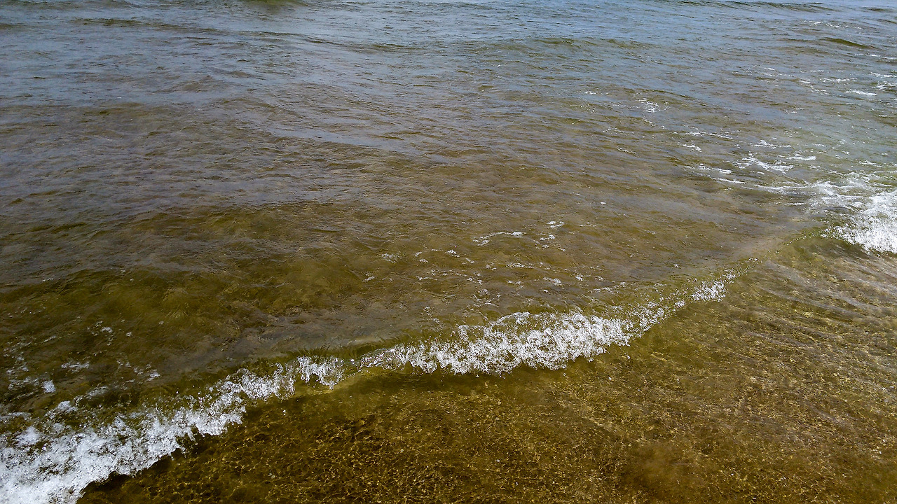 바닷물에 들어가본다. 가운데 주황색 점이 본인이지만 날씬하지도 않은 남자 몸을 크게 찍어봐야 좋을거 없다.