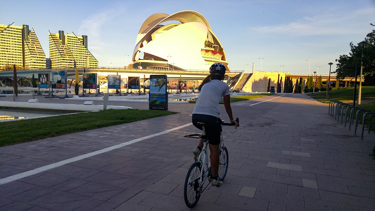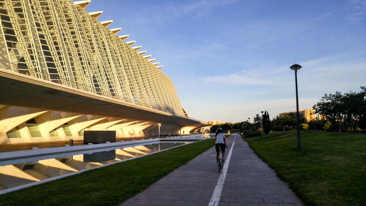 숙소 바로 앞이 '예술과 과학의 도시'와 걸리버 공원이니 자전거길로 슬슬 달려 지나간다.