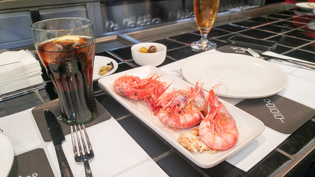 가게에 들어가기 전부터 눈 여겨보던 붉은 새우를 주문한다. 큼직하고 맛있긴 하지만 자연산 생새우라 그런지 한 마리에 5유로나 되는 놈들이다. 나중에 알았지만 사실 비싼 가격은 아니었다. 비싸단 생각에 많이 못 먹었는데 넉넉하게 먹을 걸 그랬다.