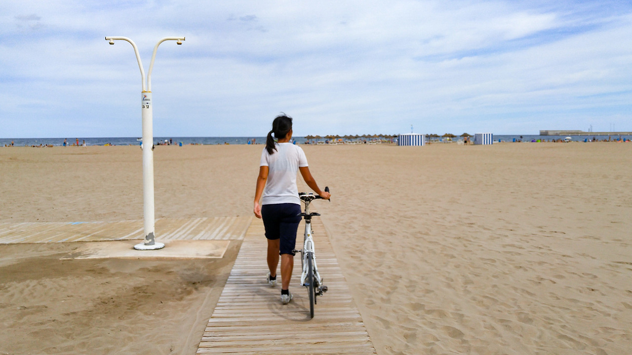 이제 발렌시아 해변으로 간다. 해변에 가는 도중에 지니님의 클릿 페달이 망가진다.