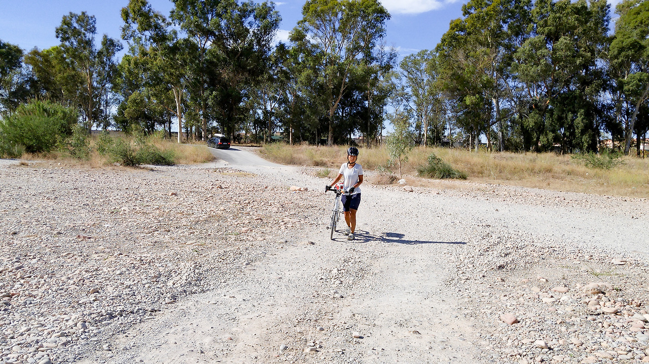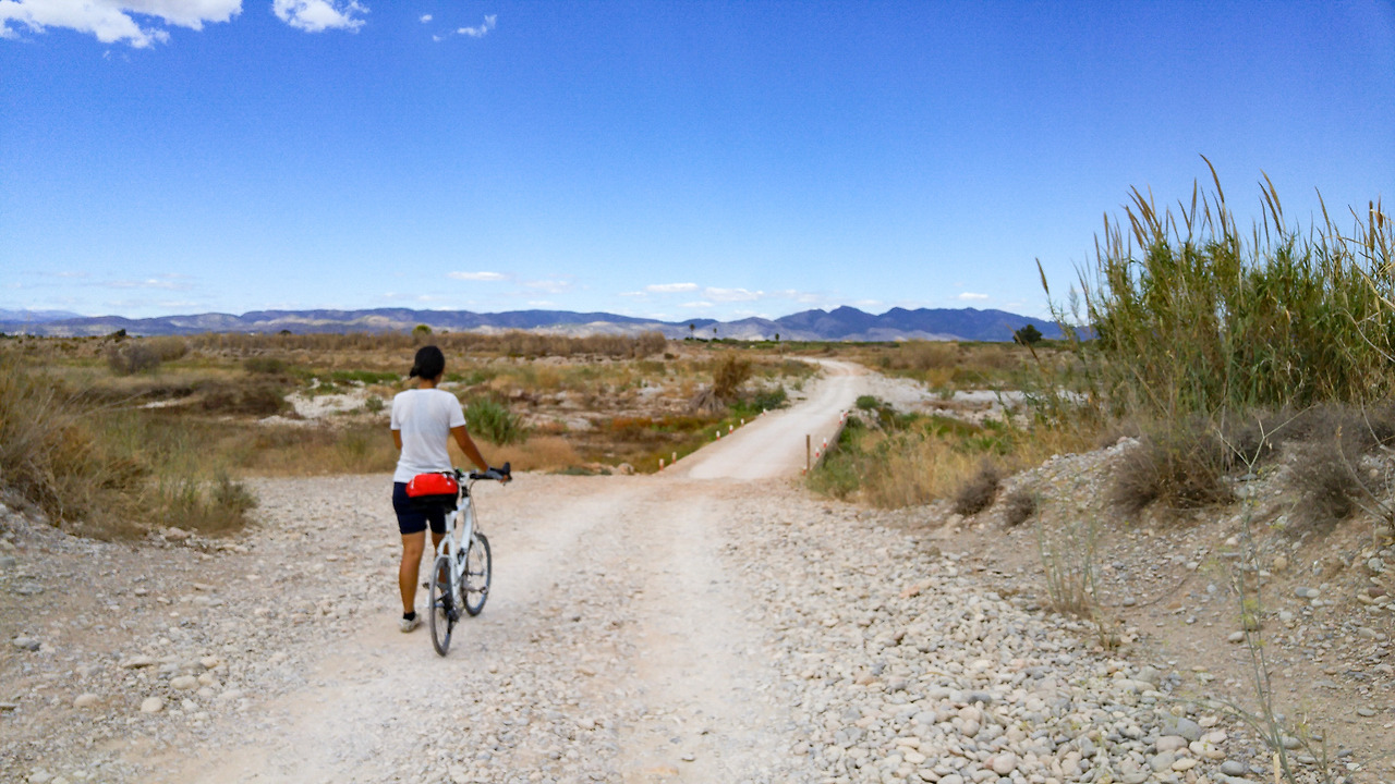 맞는 길인 듯하니 자전거를 끌고 걸어간다. 바짝 마른 미하레스 강(Rio Mijares)을 비포장길로 건너게 된다. 강 때문일까? 우리가 경로를 잘못 잡은 것일까? 오늘은 자전거를 끌고 걸어가는 길이 은근히 많고 길다.