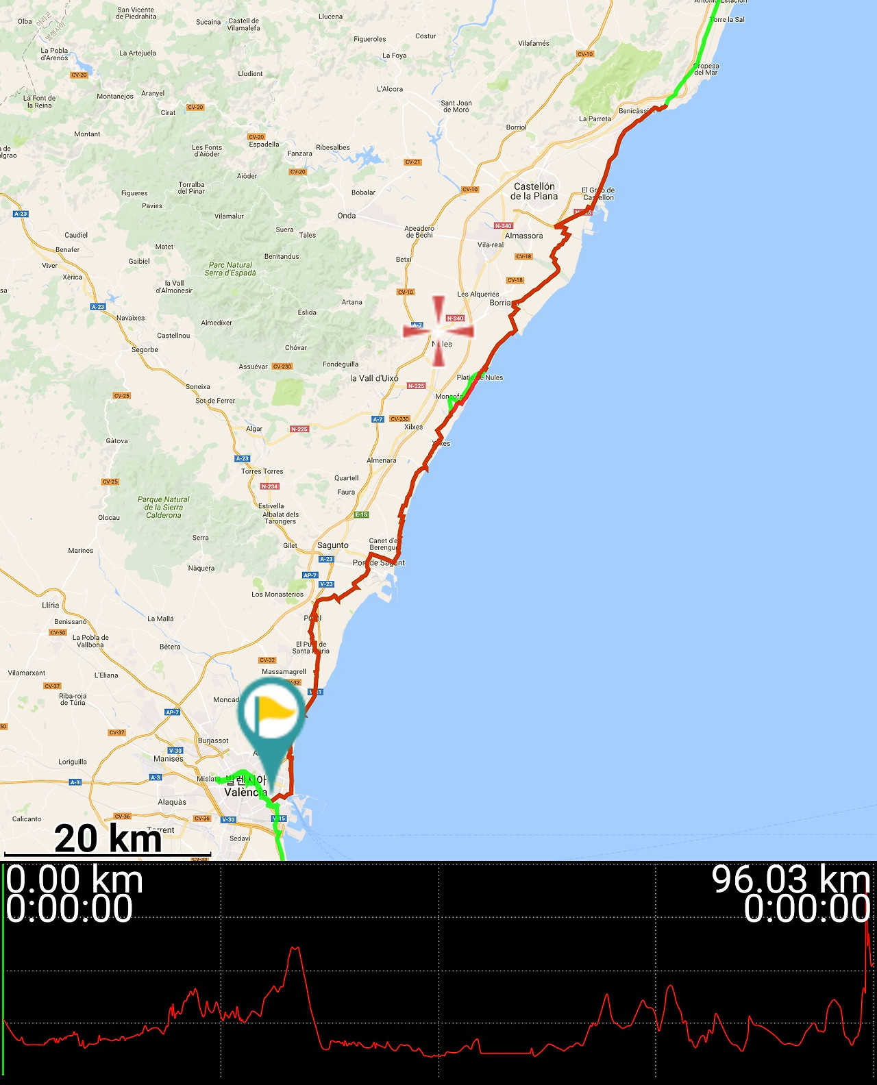 이제 해변 근처의 뒷길을 계속 달린다. Almarda를 벗어나면 이제 발렌시아 지방에서 카스텔론으로 넘어가게 된다. 해변 쪽으로는 길이 이어지지 않으니 특별한 볼 일(화장실, 간식) 없이 들어갔다 나왔다 하는 수고를 하고싶지는 않다.
