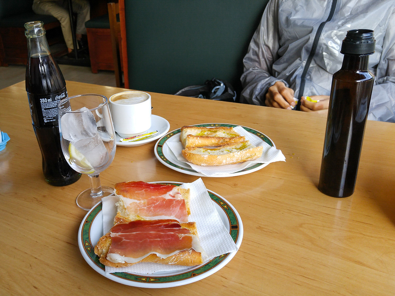 항구 근처 식당에서 아침을 먹으러 들어갔는데 하몽 토스타다에 하몽이 너무 적게 올라가 있다. 정확히 빵조각만한 얇은 하몽 한 장 뿐이다. 실망