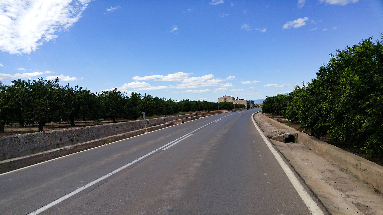 스페인의 한적한 시골길을 계속 달린다. Camino Bovalar, Camino de Beniesma 등등 샛길만 골라서 가니 비포장길도 종종 나온다.