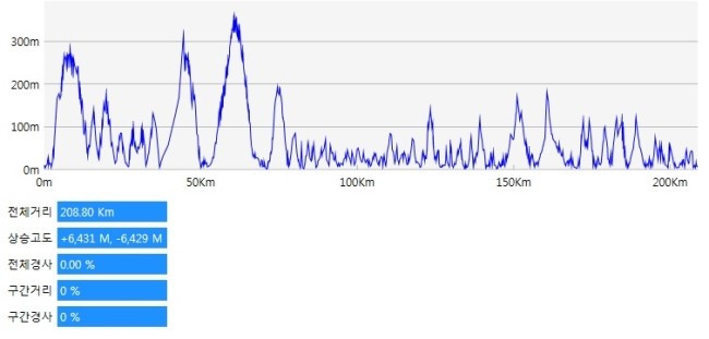 고도표를 보니 낙타 등 코스로 오르막이 많고 평지가 거의 없는 힘 빠지는 코스일 듯합니다.