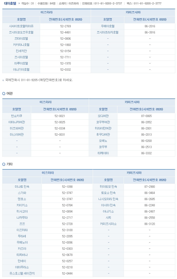 숙박 정보는 대마도행 배편을 취급하는 대아해운 홈페이지에서 볼 수 있습니다.