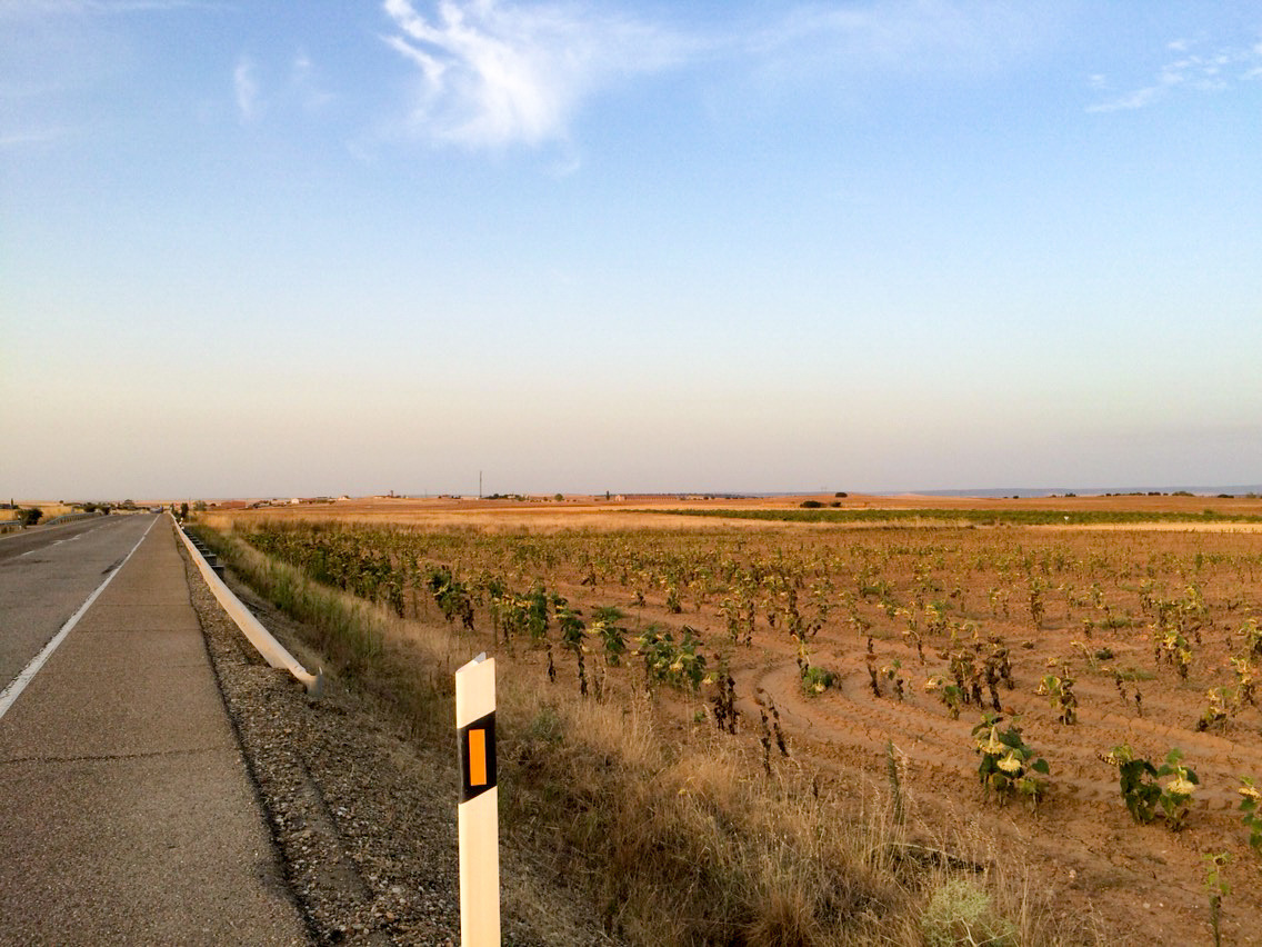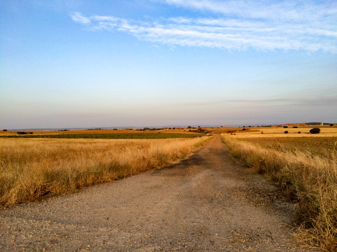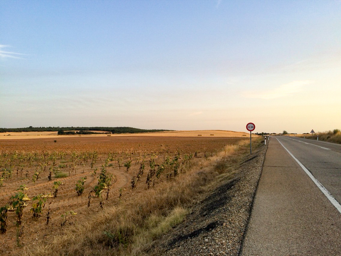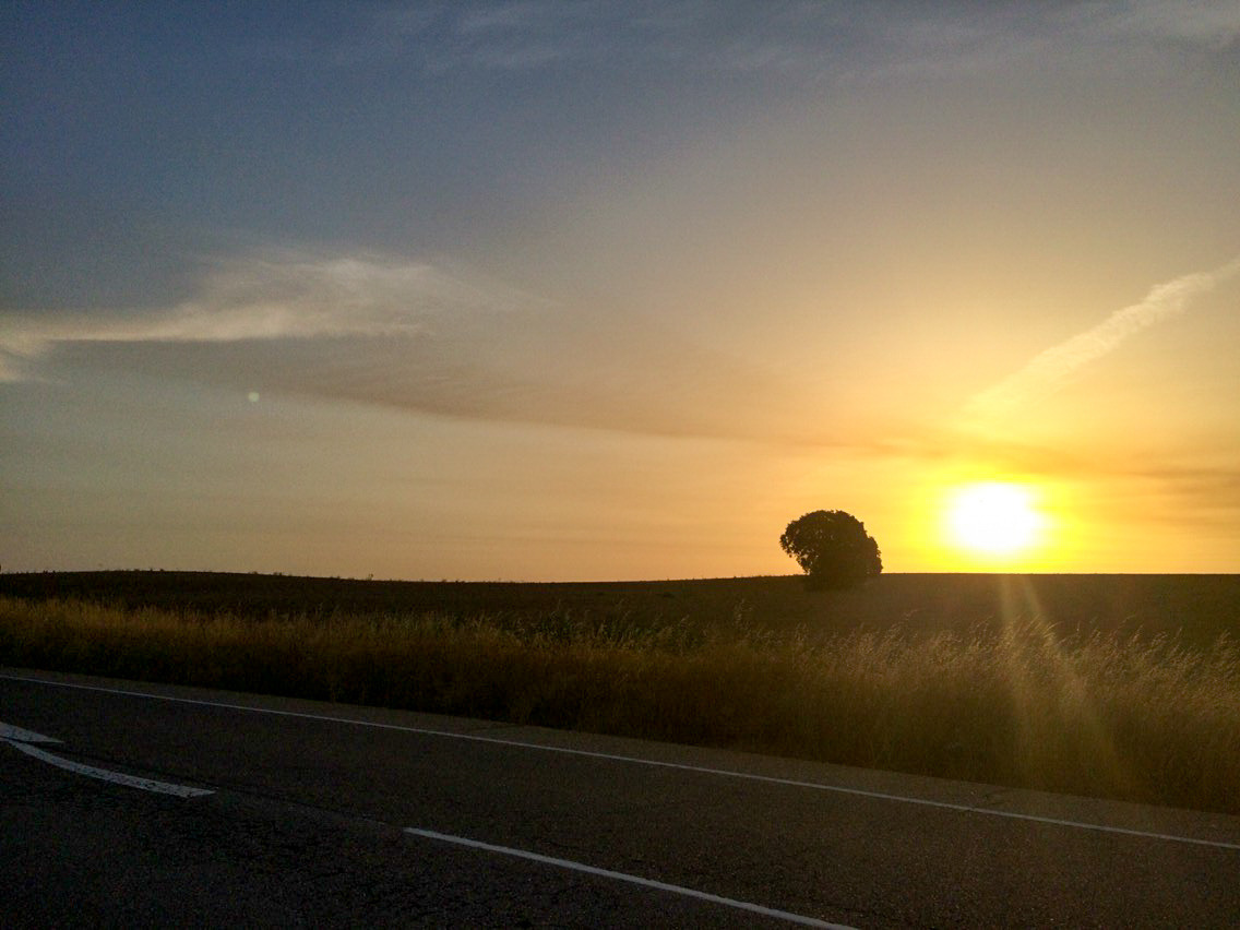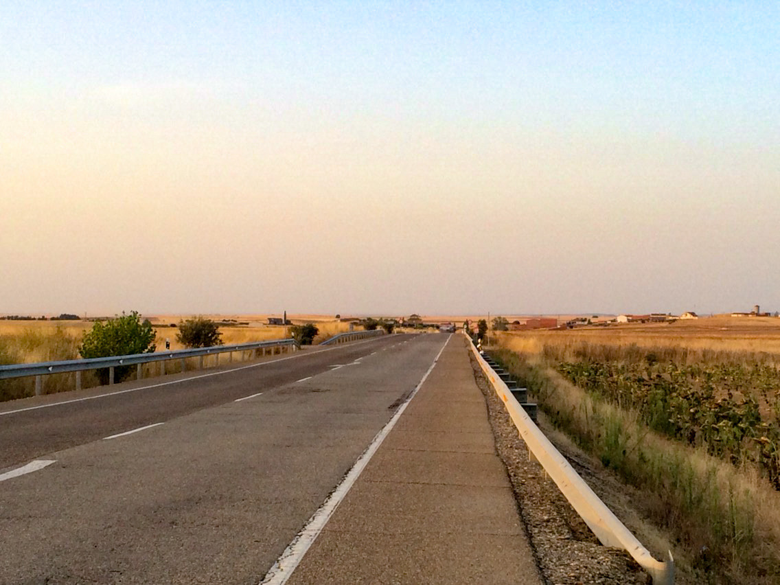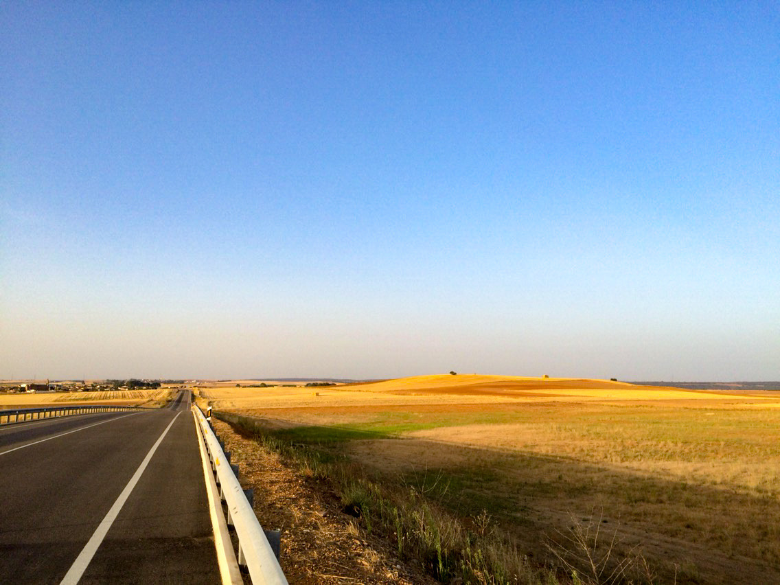 해가 떠오를 수록 황금색 들판과 하늘의 그라데이션 색이 살아났다. 프랑스길에서 메세타 지역을 많이 못 누린 것이 아쉬웠는데, 여기에선 국도를 타면서도 그 못지 않은 풍경을 감상할 수 있었다. 넘나 한결같아서 나중에는 조금 지겨워졌지만..ㅎㅎ