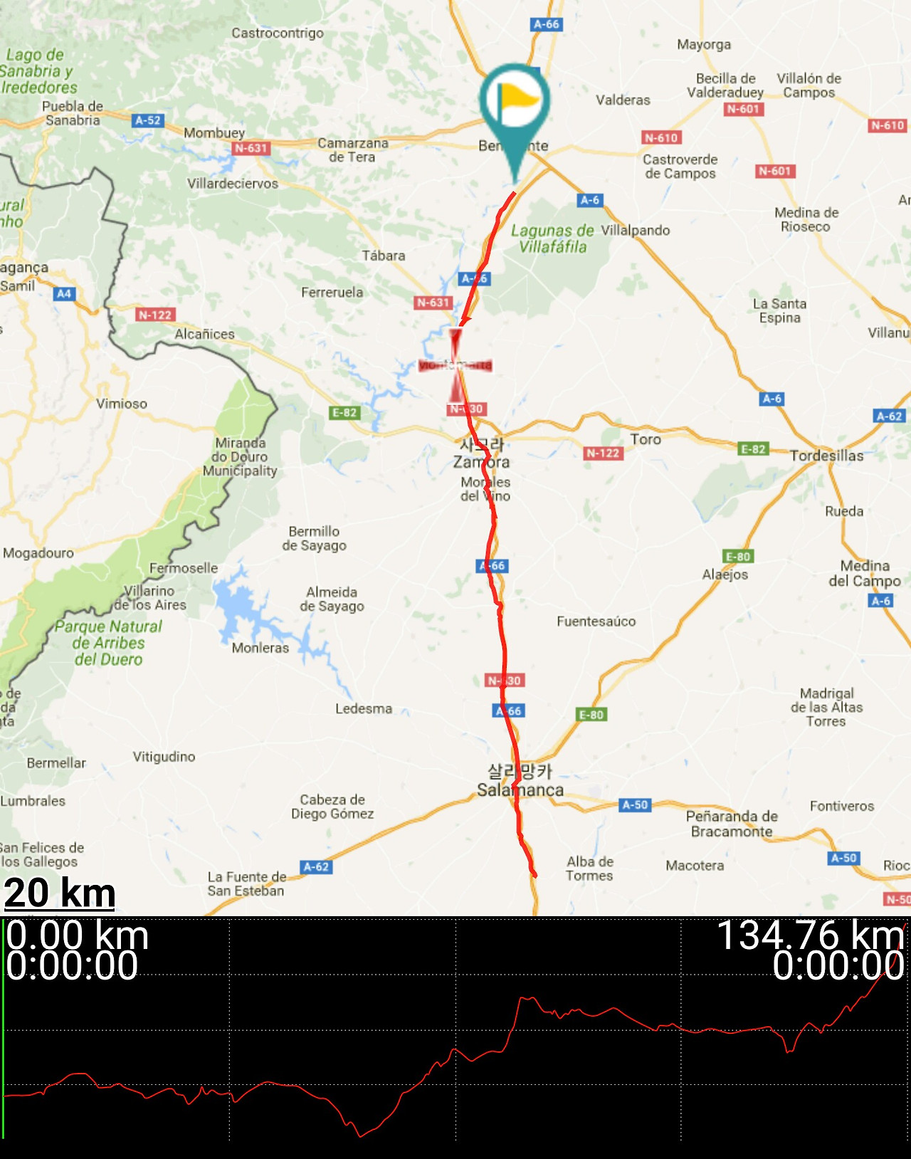 완만한 업힐이 이어졌지만 Salamanca 입구에서 쉬어가며 보급한 것이 도움되어 천천히 나아갔다.