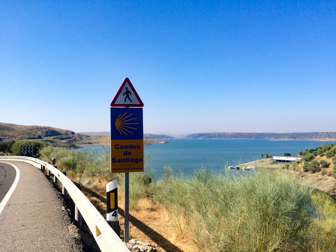 까미노 표지판 뒤로 드넓은 호수가 나타난다. 여러 개의 물줄기가 사방의 강으로 이어지는 듯했다. 왠지 마음에 들었는데, 생각보다 사람이 별로 없었다.