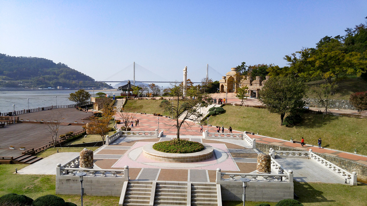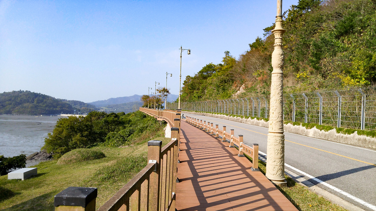 다시 영광대교를 건넜다. 돌아갈 때는 아까 봐두었던 해변 쪽 산책로가 빠를 것 같아서 산책로를 이용한다.