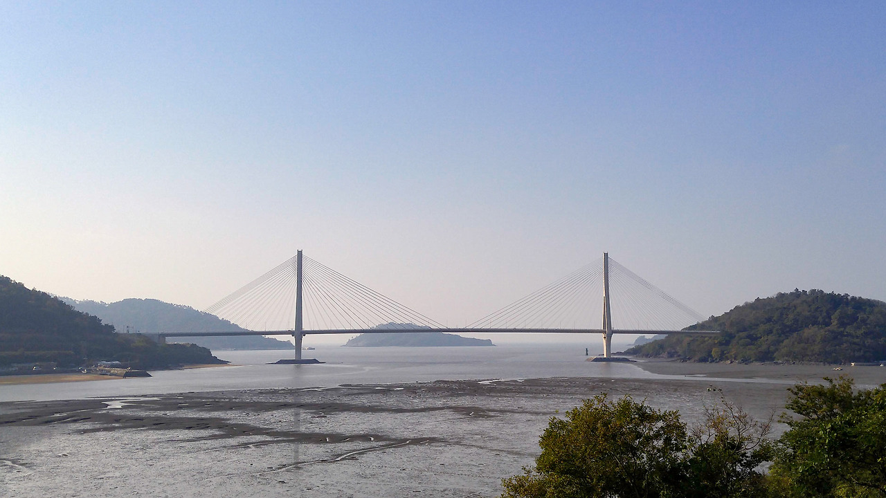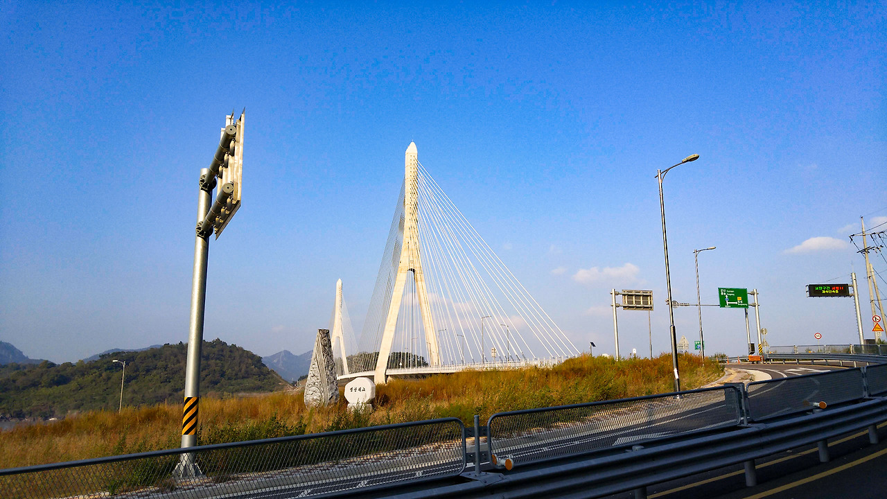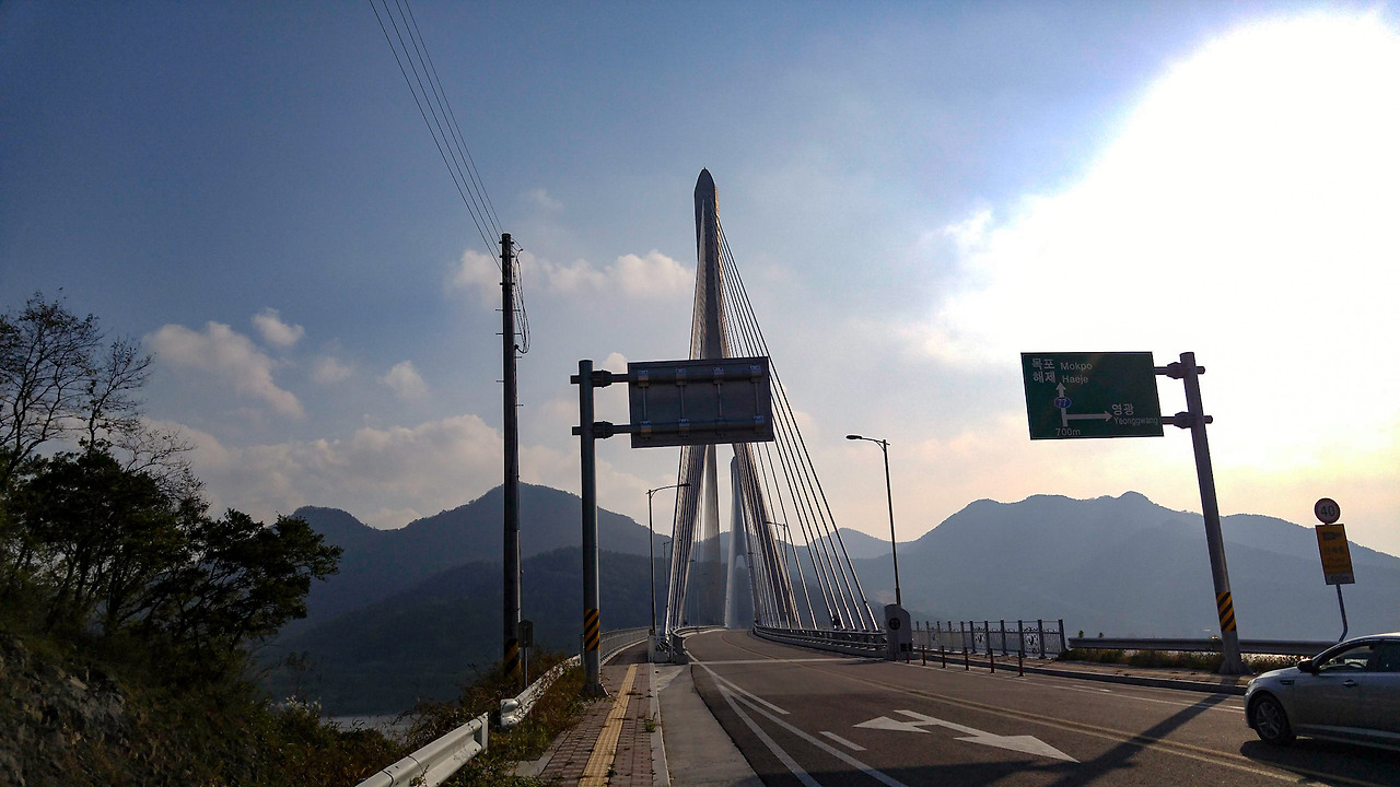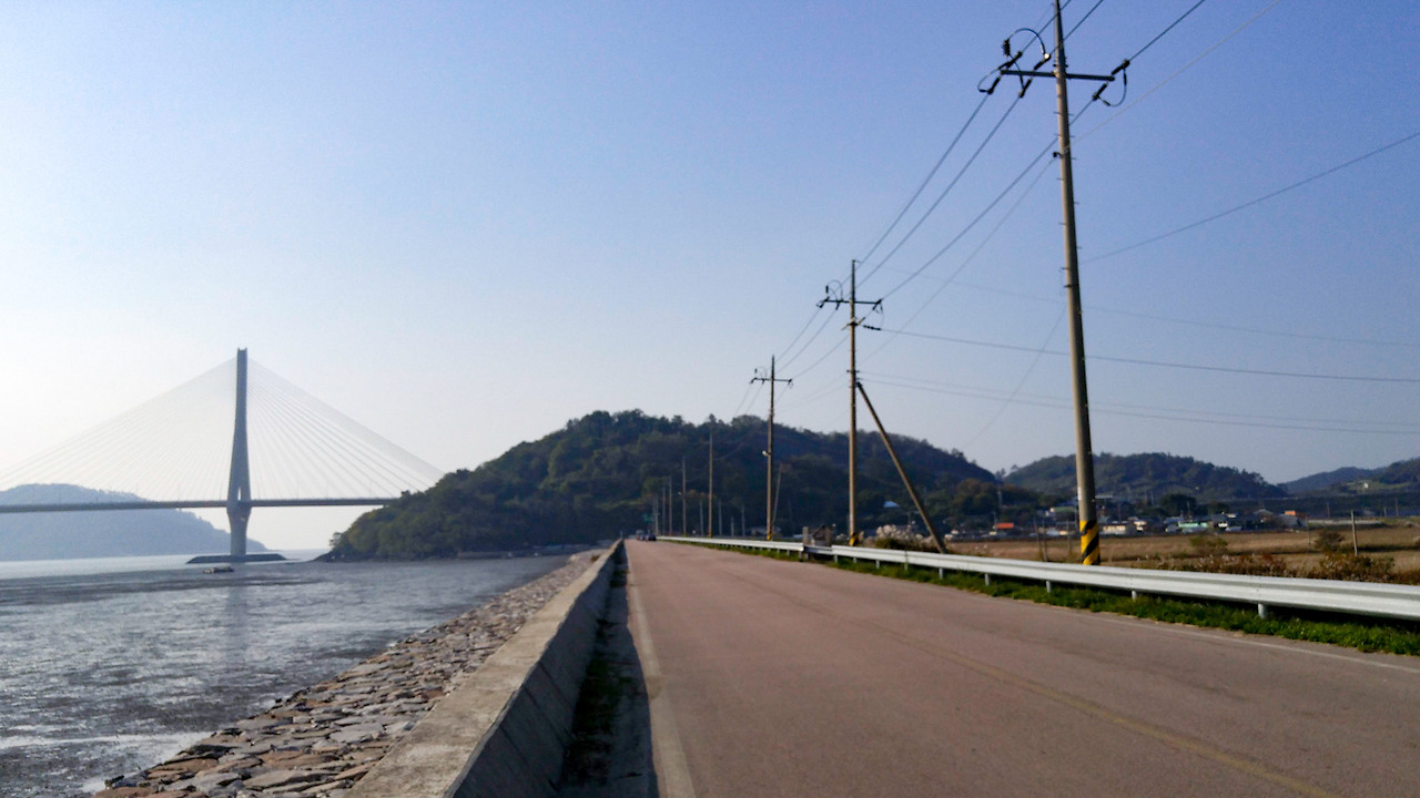 데크길을 쭉 따라 가는 동안에 서쪽으로 개통된지 얼마 안 된 영광대교가 보인다. 작년에 들렀을 때는 한참 공사 중이었다.