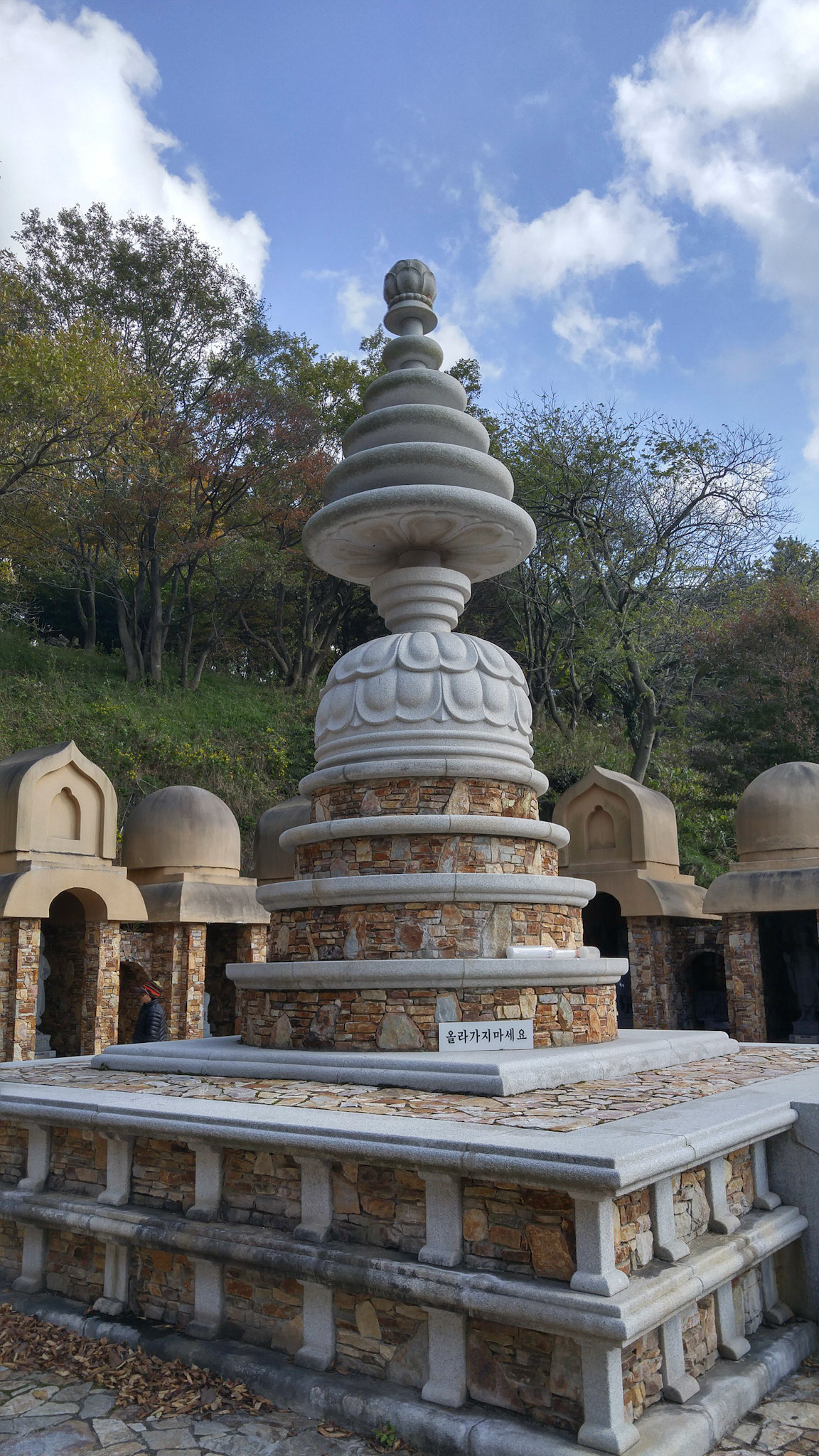 숲쟁이꽃동산에서 내려가면 간다라 불교 양식의 탑이 있다. 탑 주변에 여러가지 불상과 설명이 있으니 쭉 둘러보는 것도 좋다.