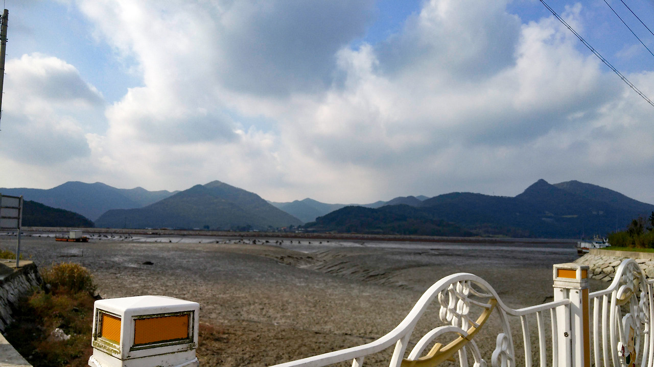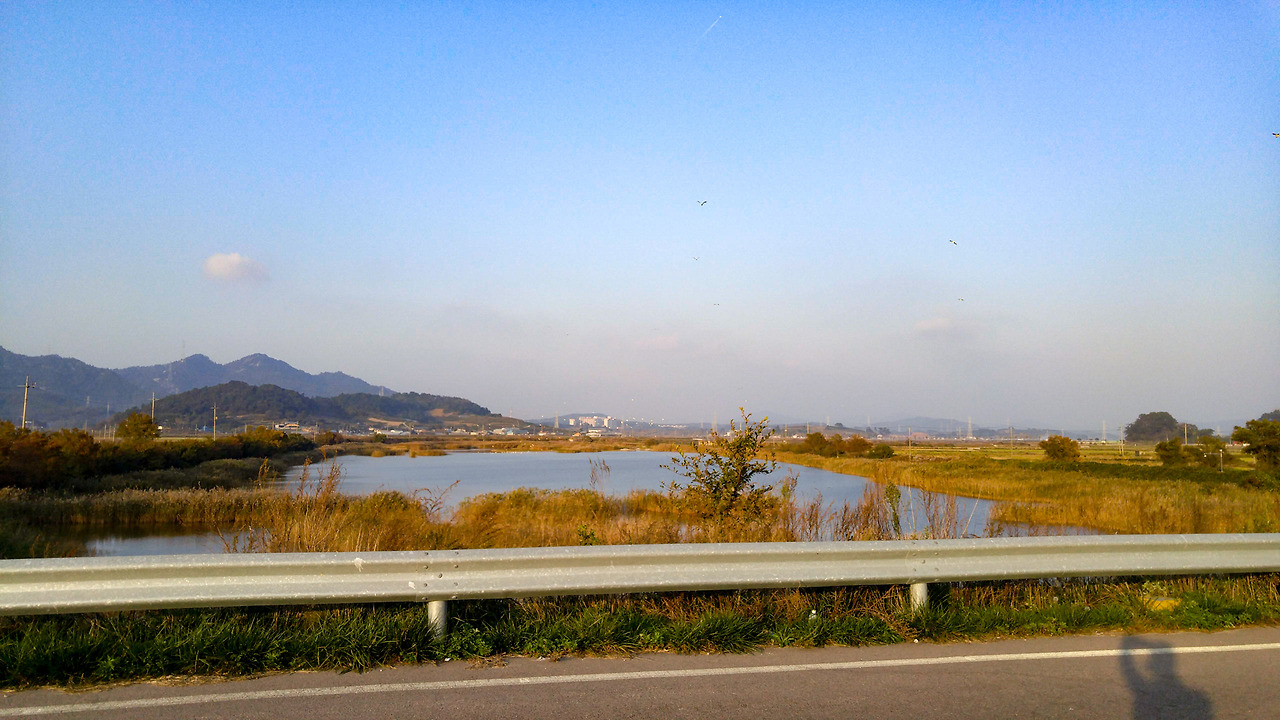 앞바다의 갯벌 위에 간척지를 만든 곳에 우리가 작년에 들렀던 식당이 있다.