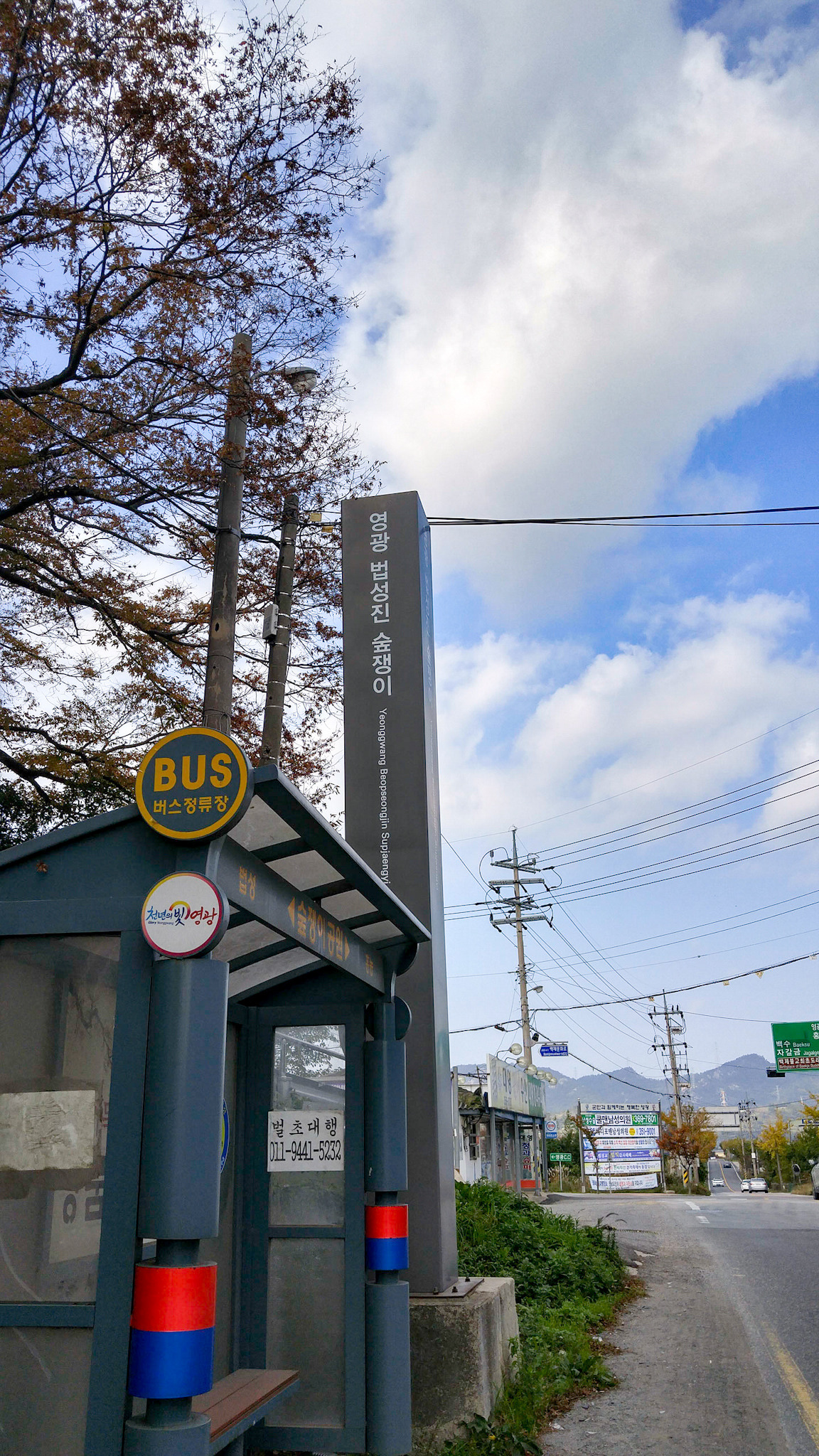 날씨가 유난히 따뜻하고 좋다. 오랜만에 나주에 내려왔으니 오늘은 영광에 가기로 한다. 나주에서 영광까지 어떻게 갈까 하다가 광주공항 입구 버스정류장에서 영광 터미널까지 가는 500번 버스를 탄다. 운이 좋게 정류장에 도착하자마자 버스가 온다. 광주에서 22번 국도가 영광까지 바로 이어지는데 광주 광산구청 근처에 영광통이란 지명이 영광까지 통하는 곳이란 뜻이다. 광주송정역에서 출발한다면 영광통까지는 걸어갈만한 거리이다. 광주터미널에서 출발한다면 영광 거쳐 법성포 가는 시외버스를 타는 편이 더 빠르고 편하다.